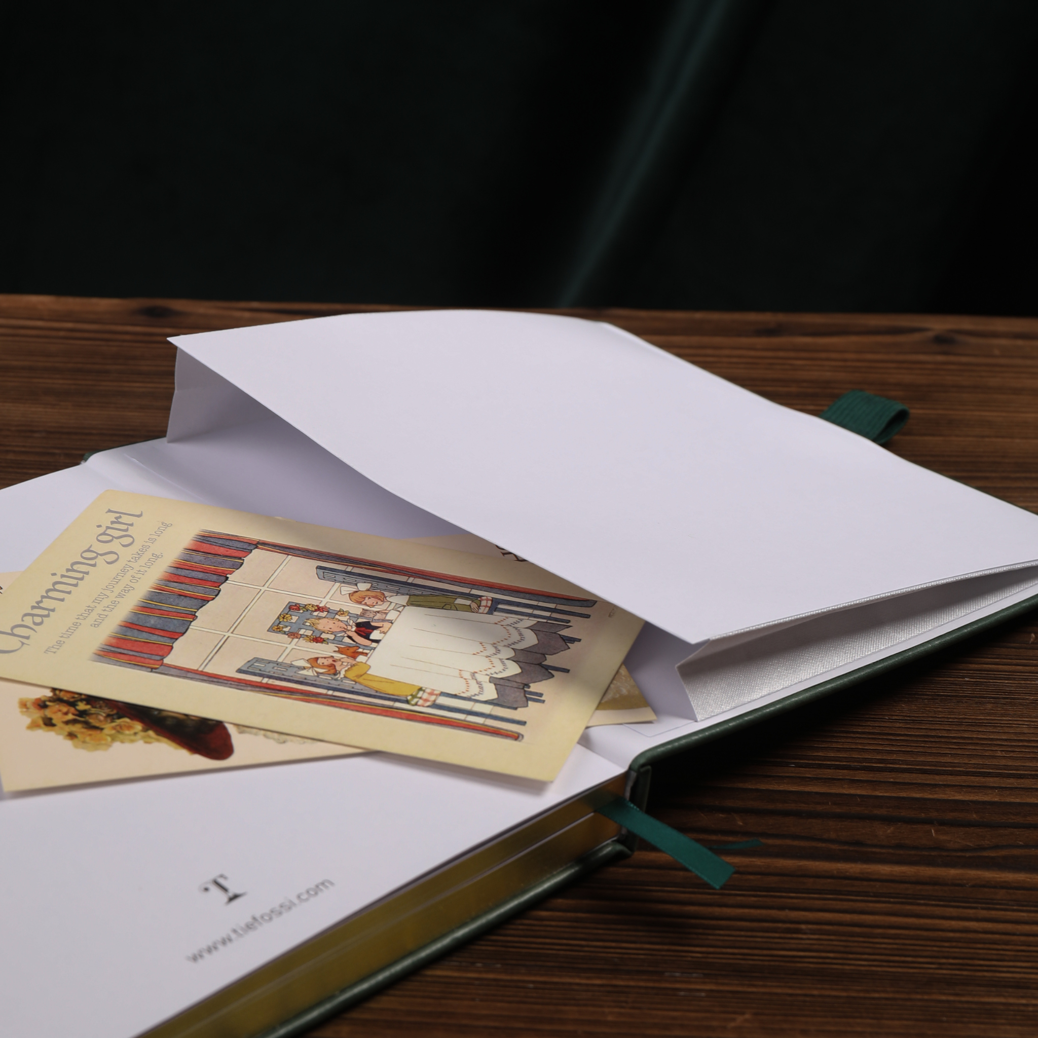 This notebook comes with several useful features. There’s a green ribbon bookmark for easy page reference, a hidden internal pocket for storing mementos, tickets, or small notes. The sturdy hardcover binding has reinforced corners, ensuring long – term durability, and the gilded page edges add a touch of luxury.