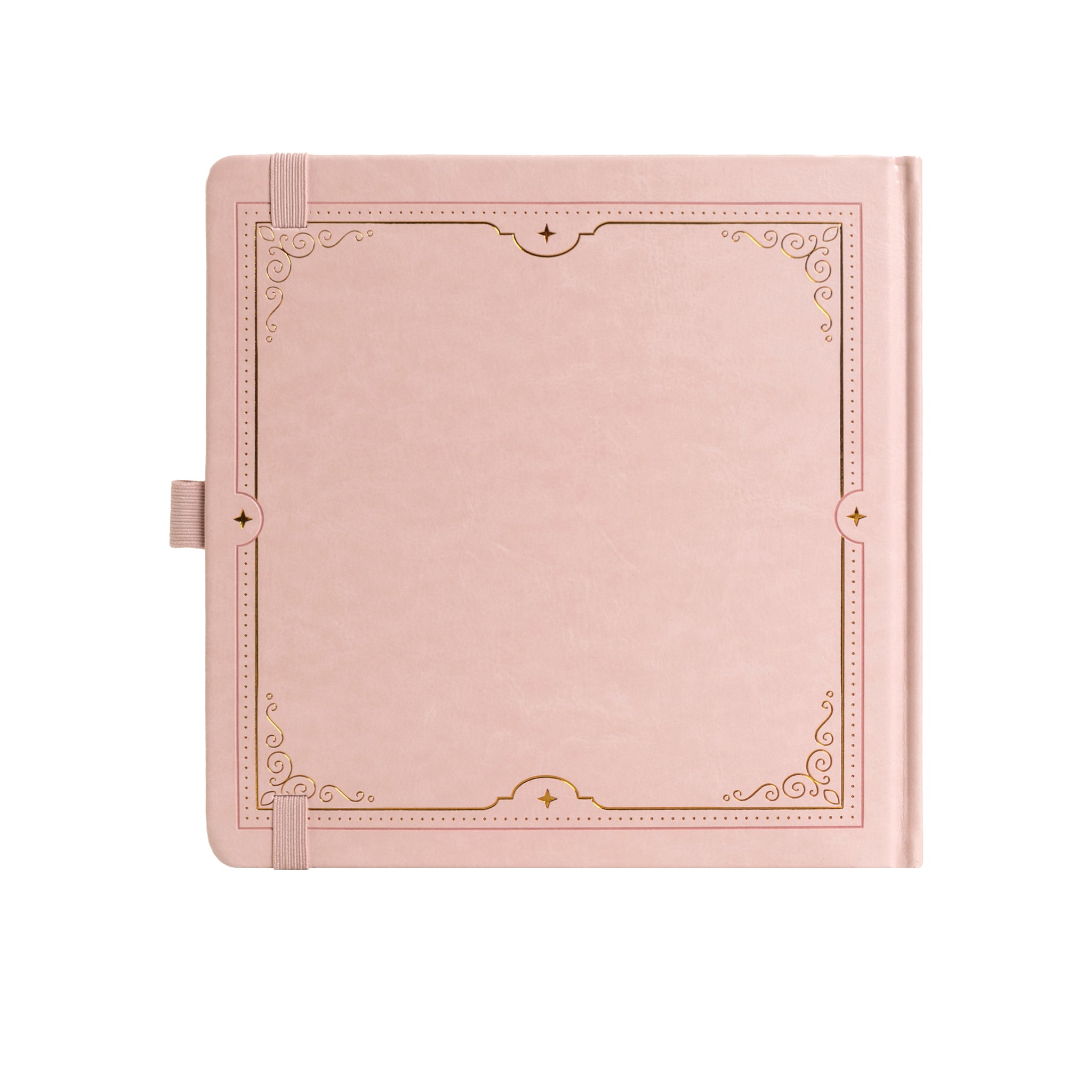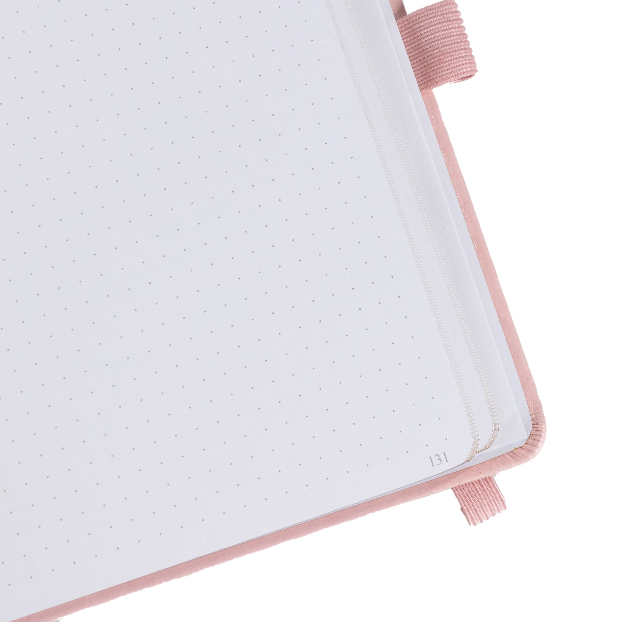 | Features | Elastic band closure, two pink satin ribbon bookmarks, dotted interior pages, gilded top edges, inside front cover pocket, “This book belongs to” page |
