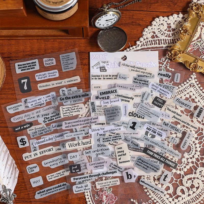 The base material of these stickers is a clear, semi – transparent self – adhesive sheet, likely made of PVC or a similar waterproof and durable plastic. The high – quality digital printing ensures clear, crisp text and vibrant color adherence. The removable, residue – free adhesive allows for easy application and repositioning, making it convenient for all your creative needs.