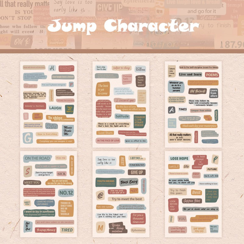 The motivational quotes on these stickers, such as “Go the extra mile”, “Never give up”, and “Happiness is right around the corner”, offer self – encouragement and are great for journaling. The sheets are of standard A5 to A6 size (approx. 10–15cm x 20–25cm) and are sturdy enough to hold multiple stickers without tearing. Individual stickers vary in size from 1–3cm in length, with text ranging from short phrases to longer quotes.