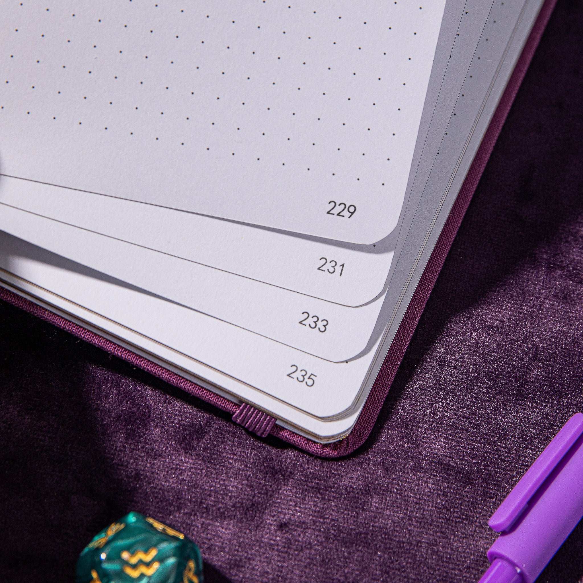 - Page Design: 256 numbered pages with 5mm distance light grey dotted notebook, perfect for bujo planning