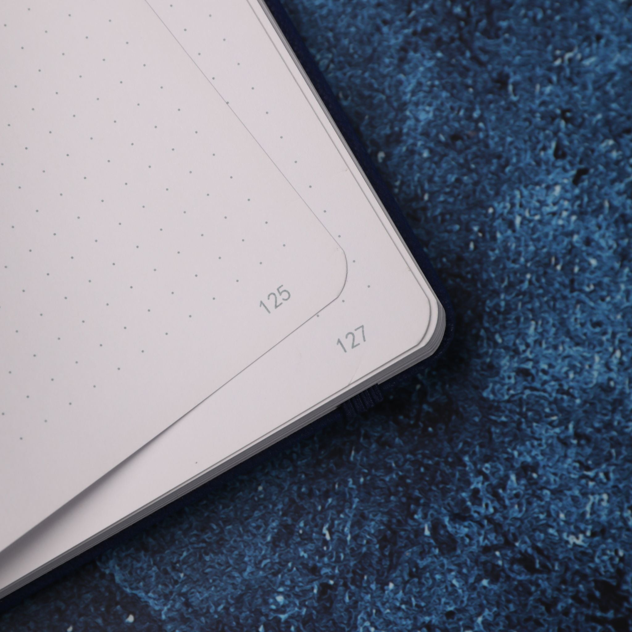 Inside, the notebook has white, thick paper with a light gray dotted grid layout. The dot – grid pages are perfect for bullet journaling, planning, or sketching. The paper is thick enough to prevent bleed – through from fountain pens or markers, ensuring a clean writing experience. The pages are numbered, clearly printed, indicating a bound, paginated journal with likely 150+ total pages.