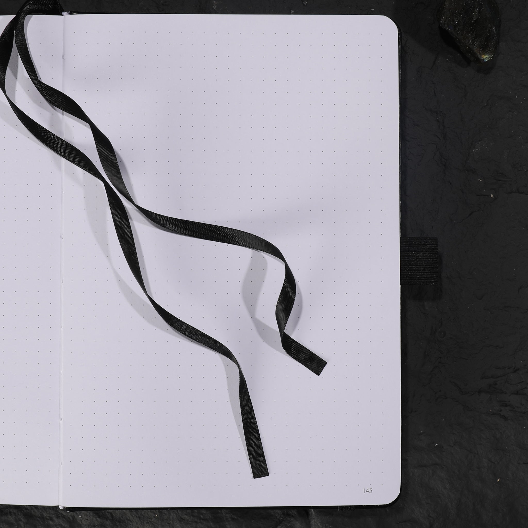 Discover the A5 Solunara Dot Grid Notebook in Black Silver, a remarkable hardcover journal that combines aesthetic luxury with functional design. This journal is a perfect choice for personal journaling, creative writing, spiritual practice, or planning, and it also makes an excellent gift.