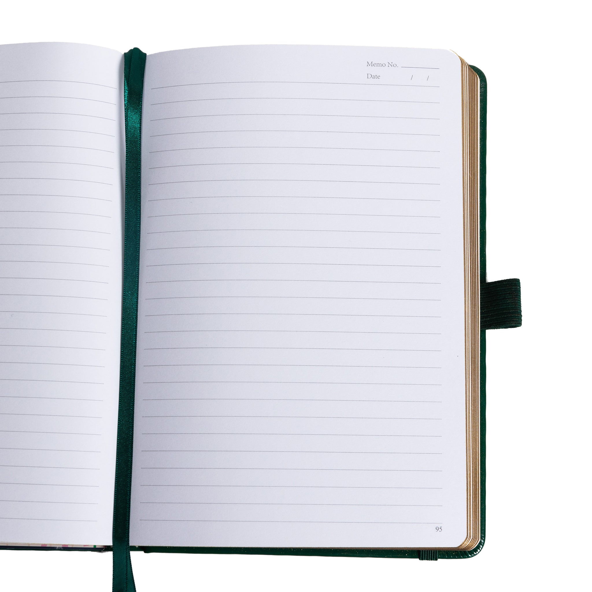 Inside, you’ll find white, lined paper. The thick, acid – free paper ensures no bleeding when using pens, and it’s durable enough for long – term use. Each page has light gray lines, and the top – right corner includes “Memo No.” and “Date” fields, adding a structured touch for organized entries.