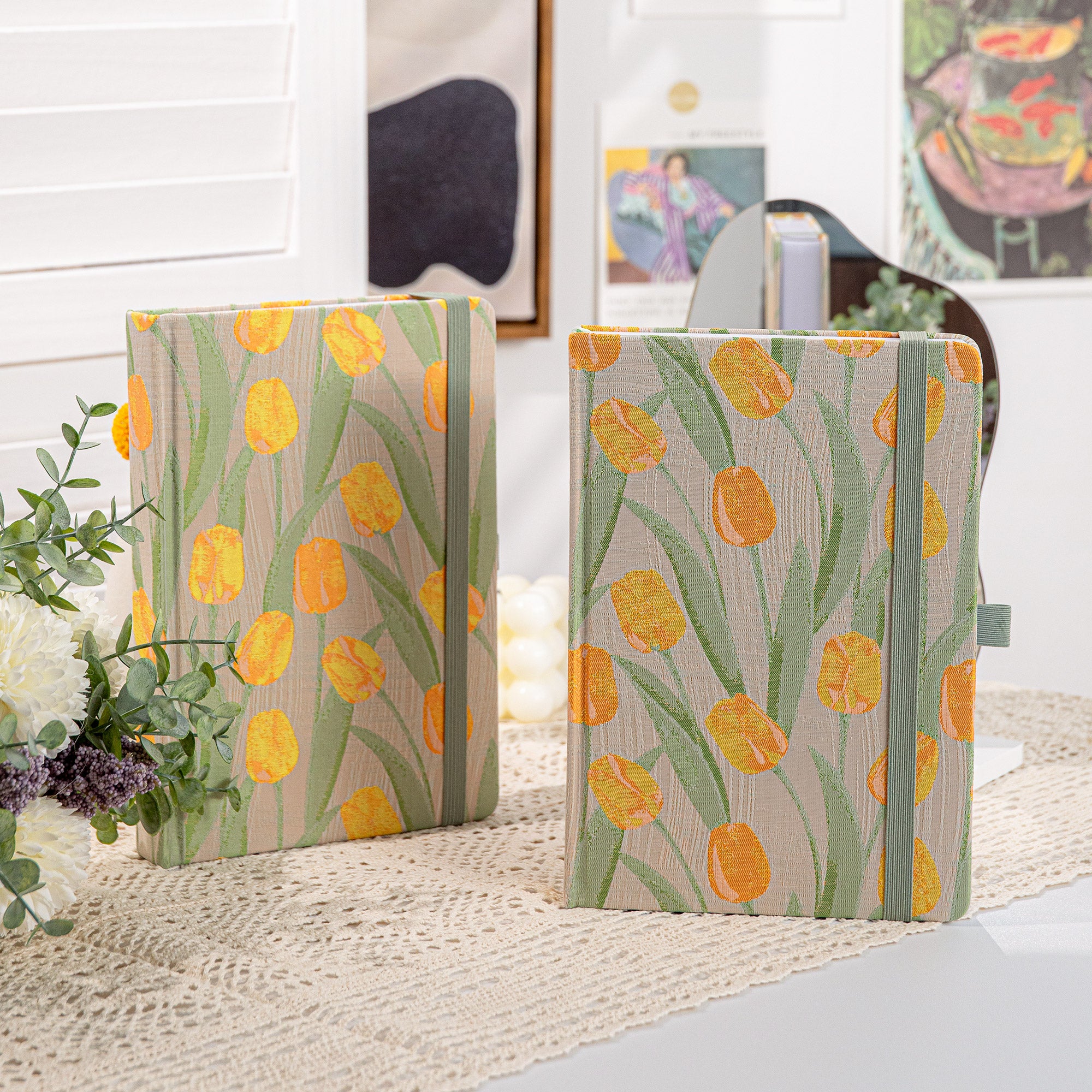 | Cover color | Soft pastel tones (light beige/ivory base, green, orange – to – yellow tulips) |
