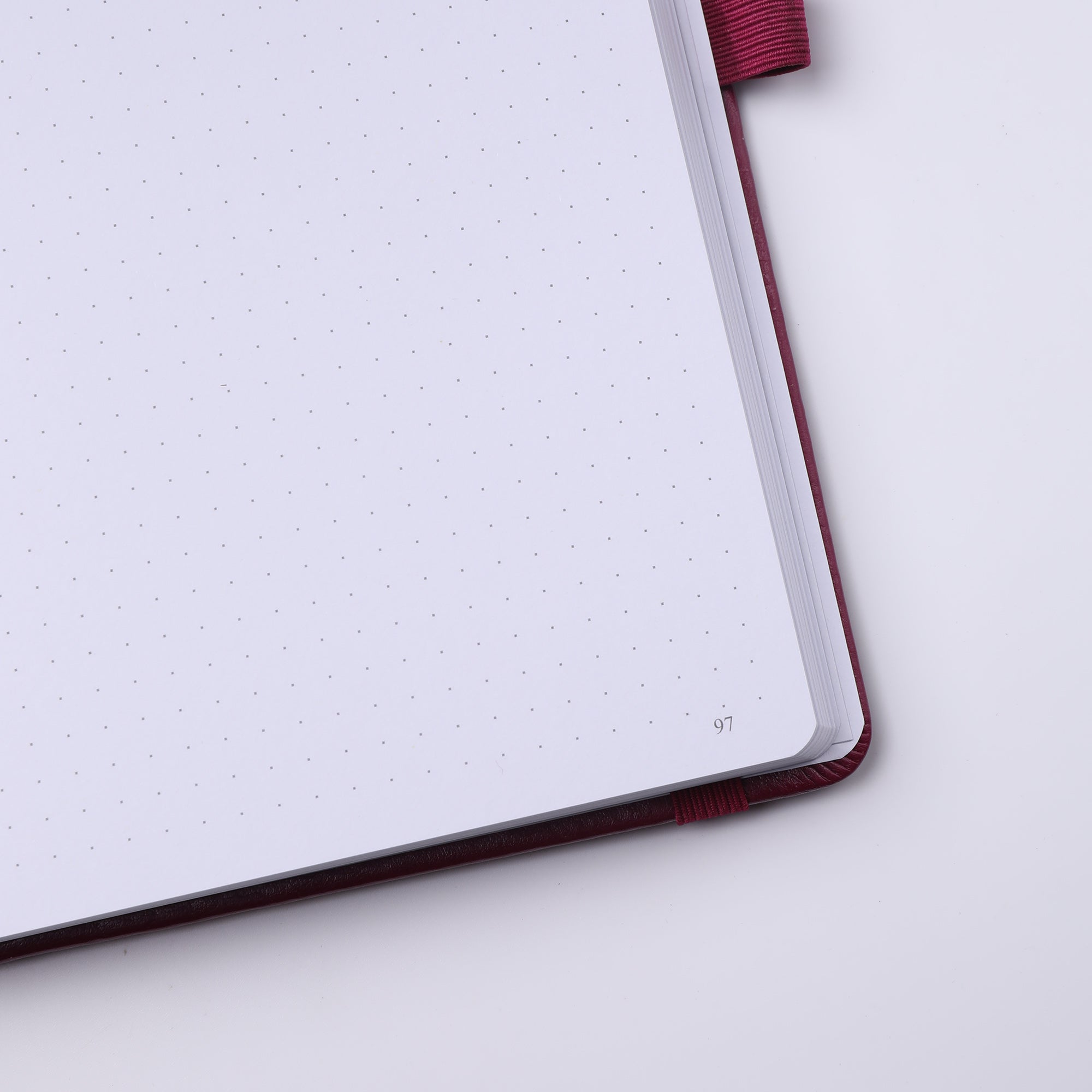 - Page Design: 190 numbered pages with 5mm distance light grey dotted notebook – perfect for bujo planning