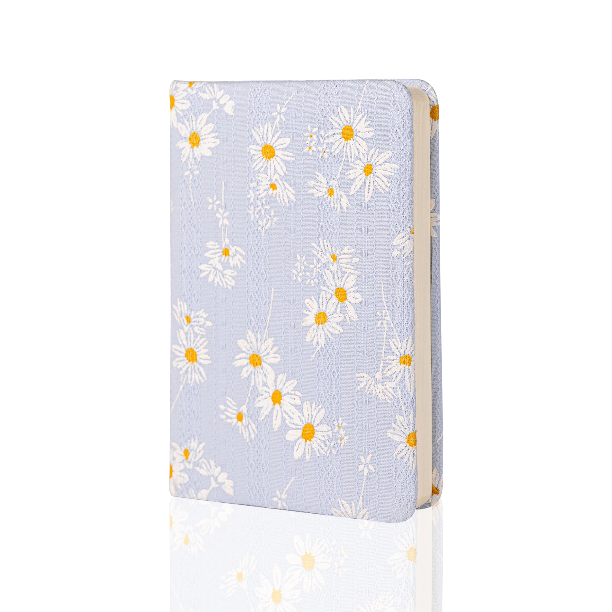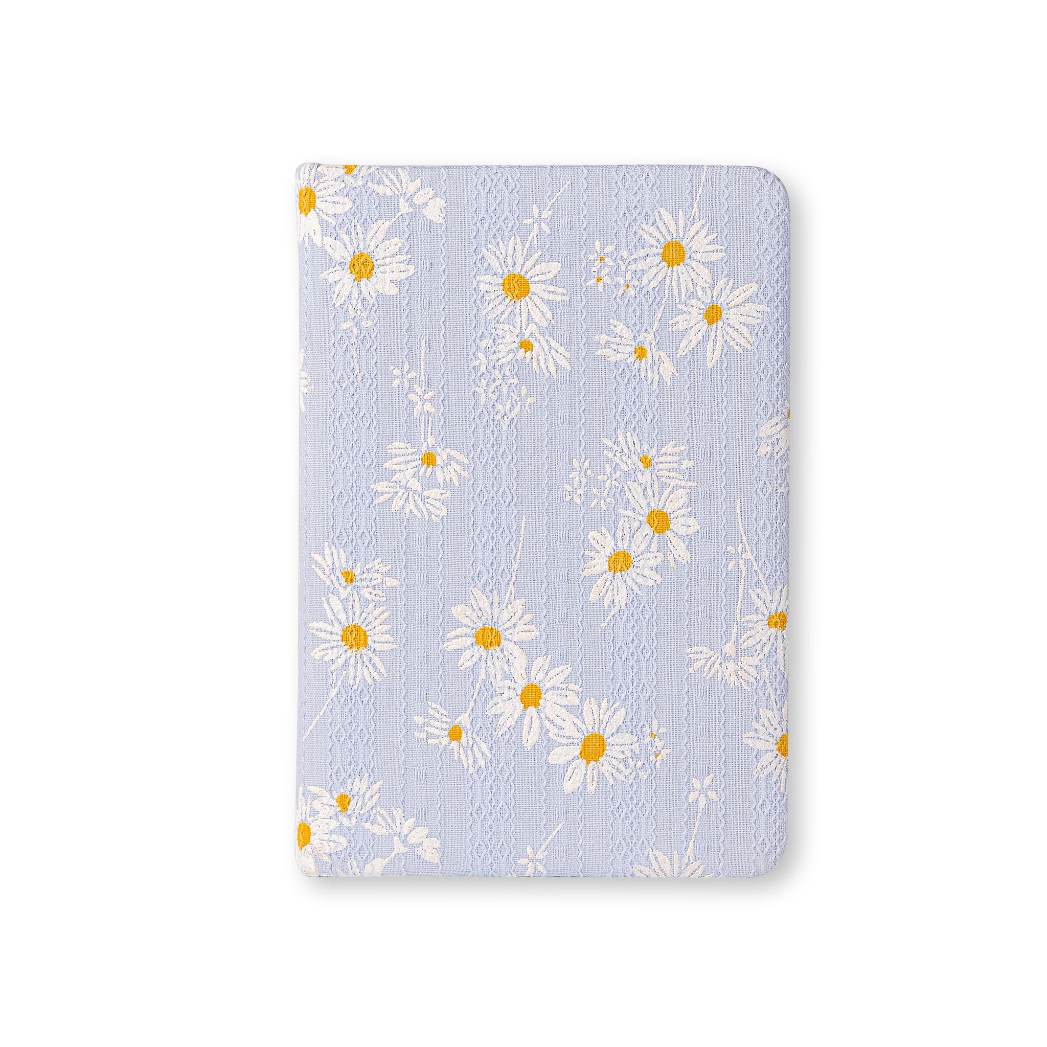 - Cover Design: Light blue background with a floral pattern of white daisies and yellow centers, along with subtle vertical lace – like textures