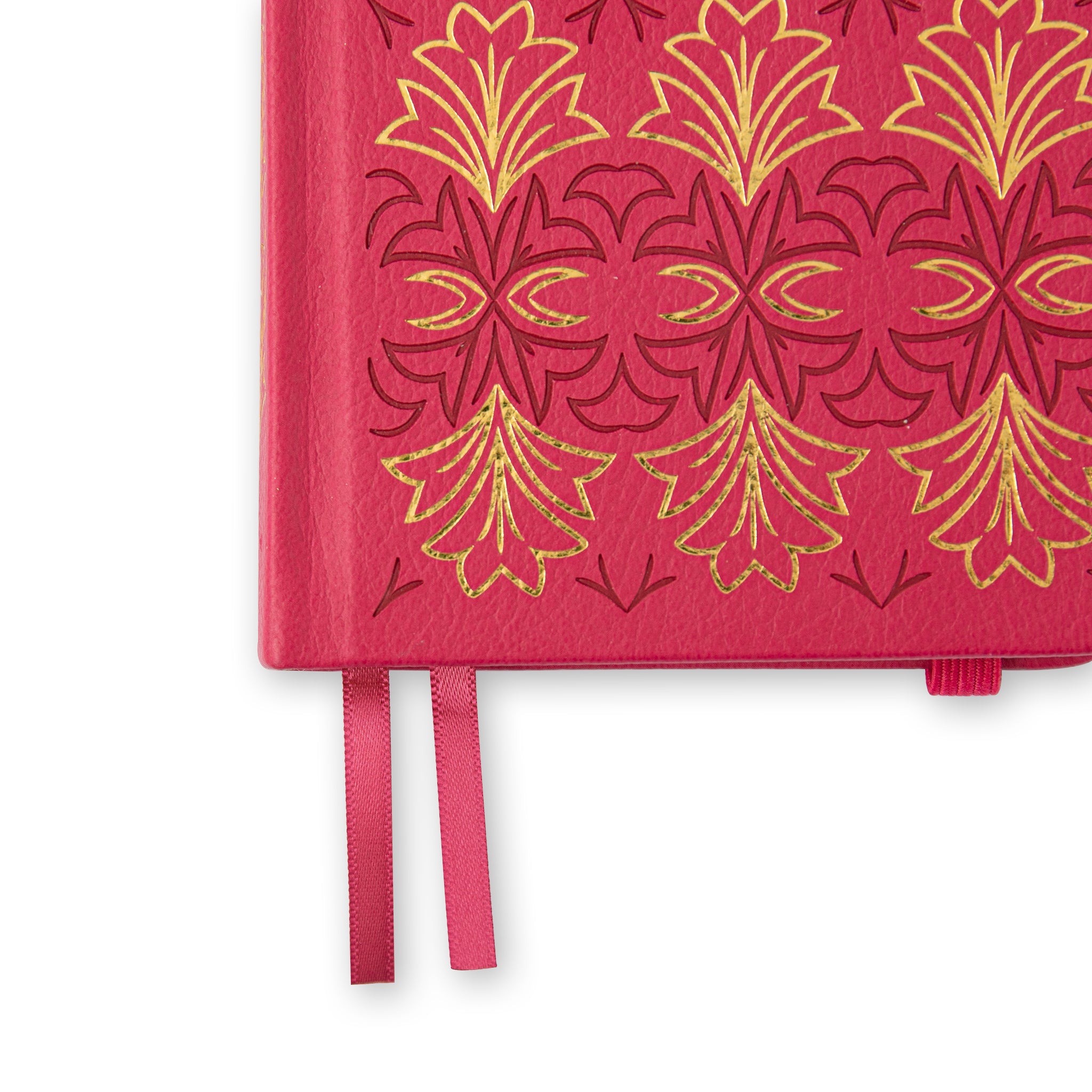 - Page Markers: Red satin/ribbon bookmarks