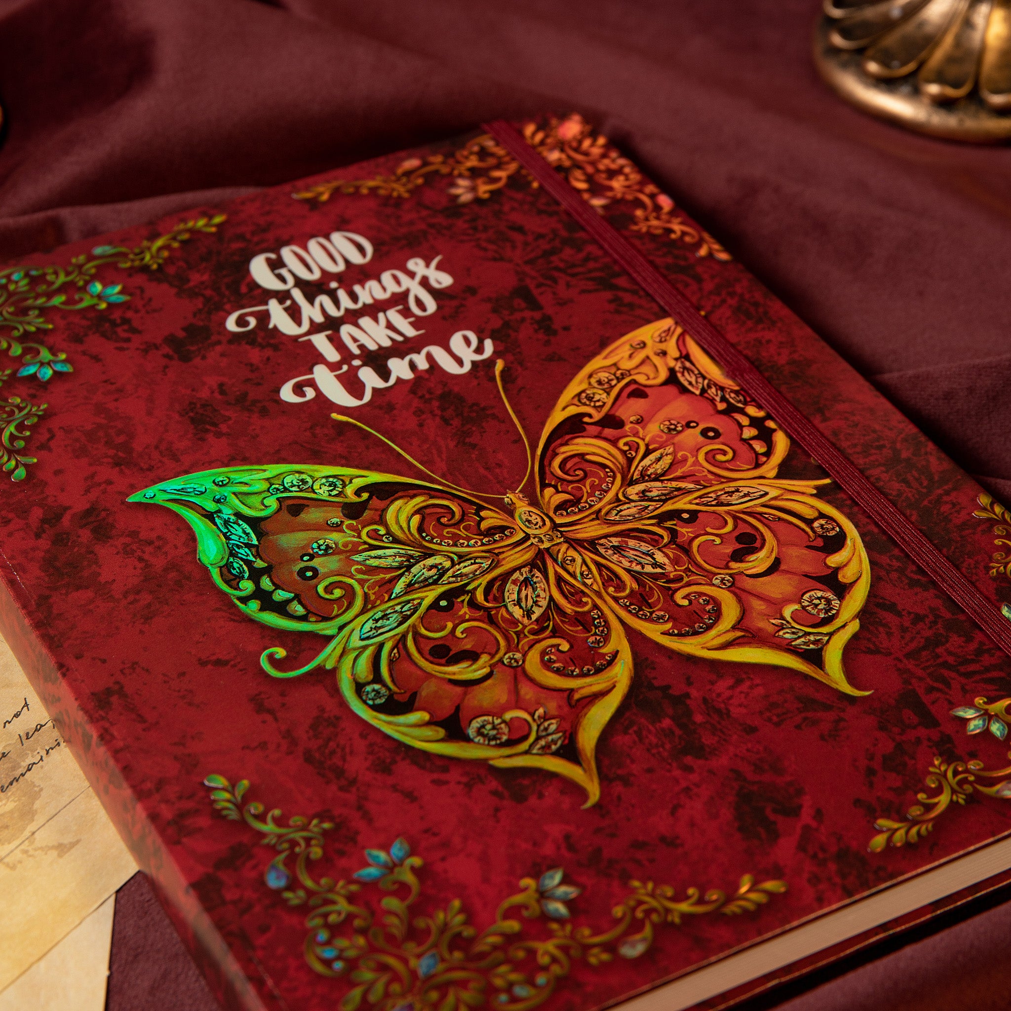 - 3D Embossed Design: Features a beautiful 3D embossed butterfly on the cover
