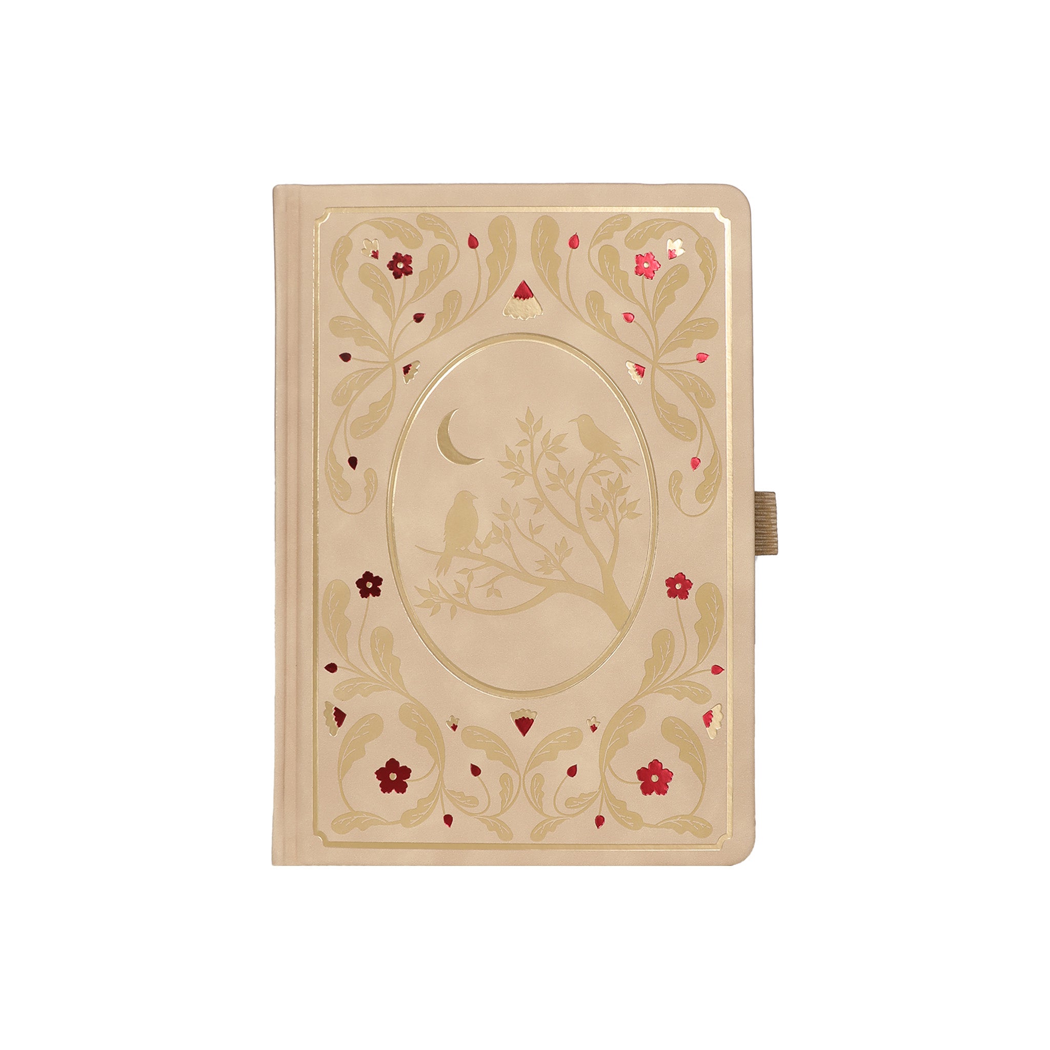 Patterns Gold floral embossing on covers, dot – grid pattern on pages