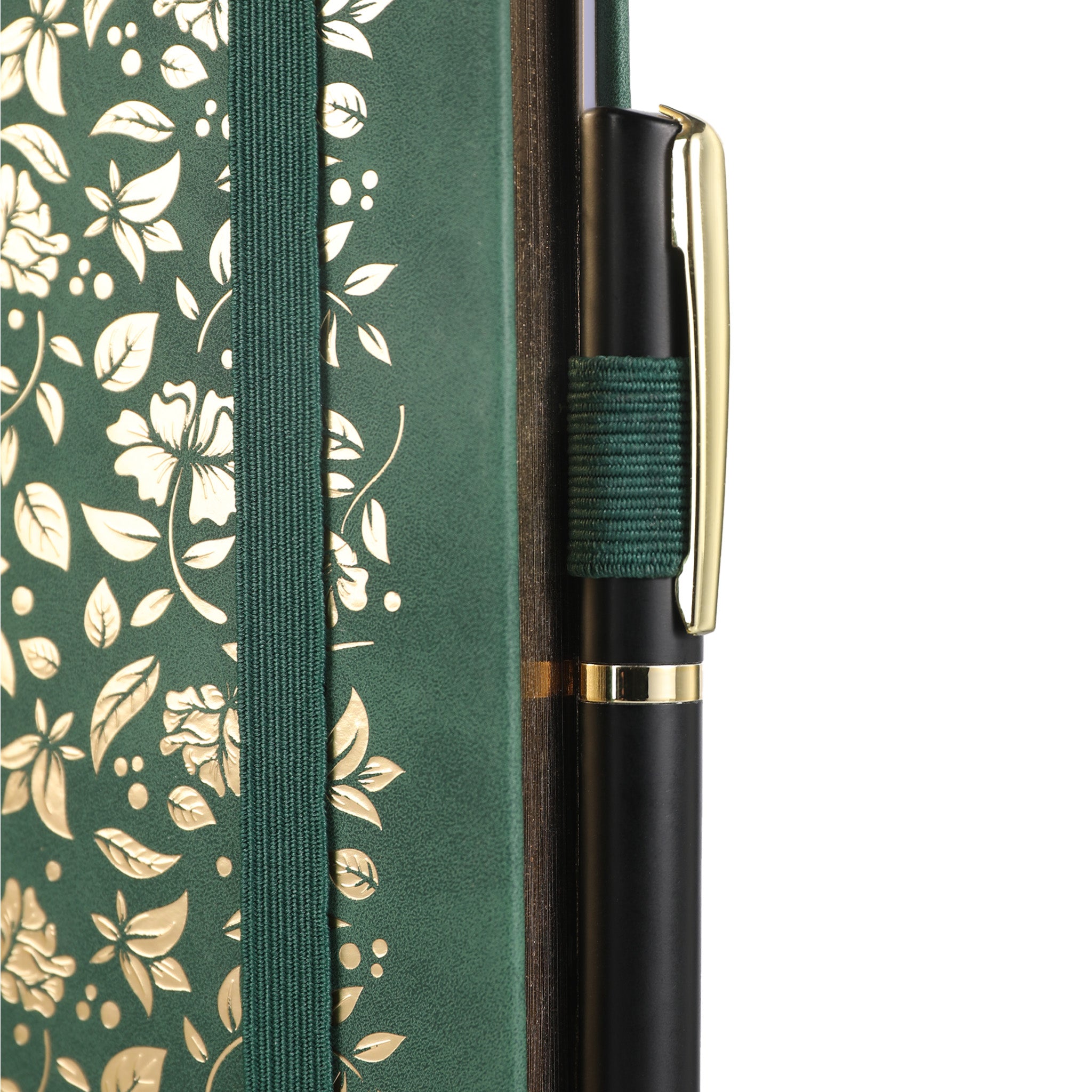 | Color of Cover | Dominant dark green (emerald) with gold floral embossing/foil accents |