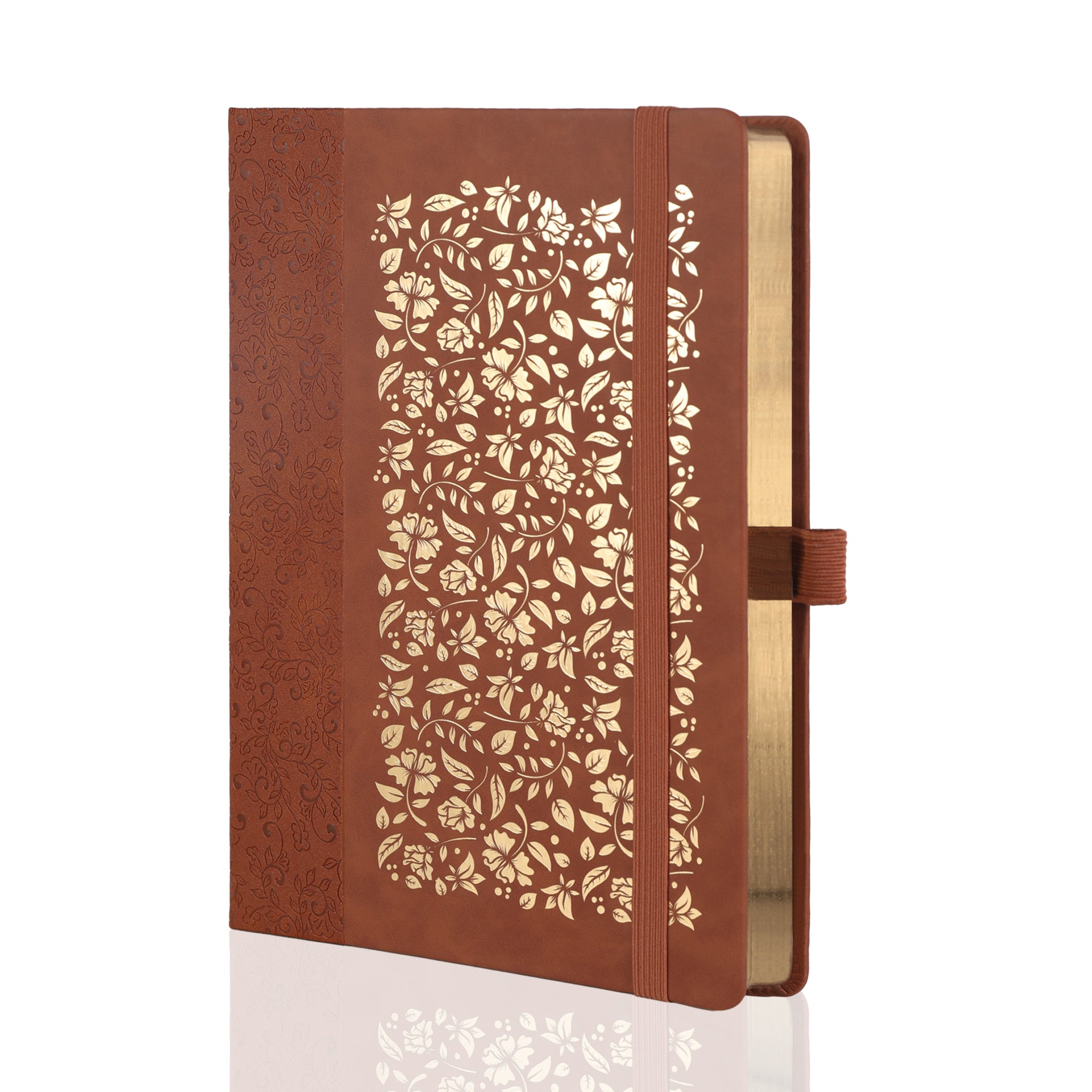 | Cover Material | Textured, faux – leather or leather – like material with embossed gold floral patterns |