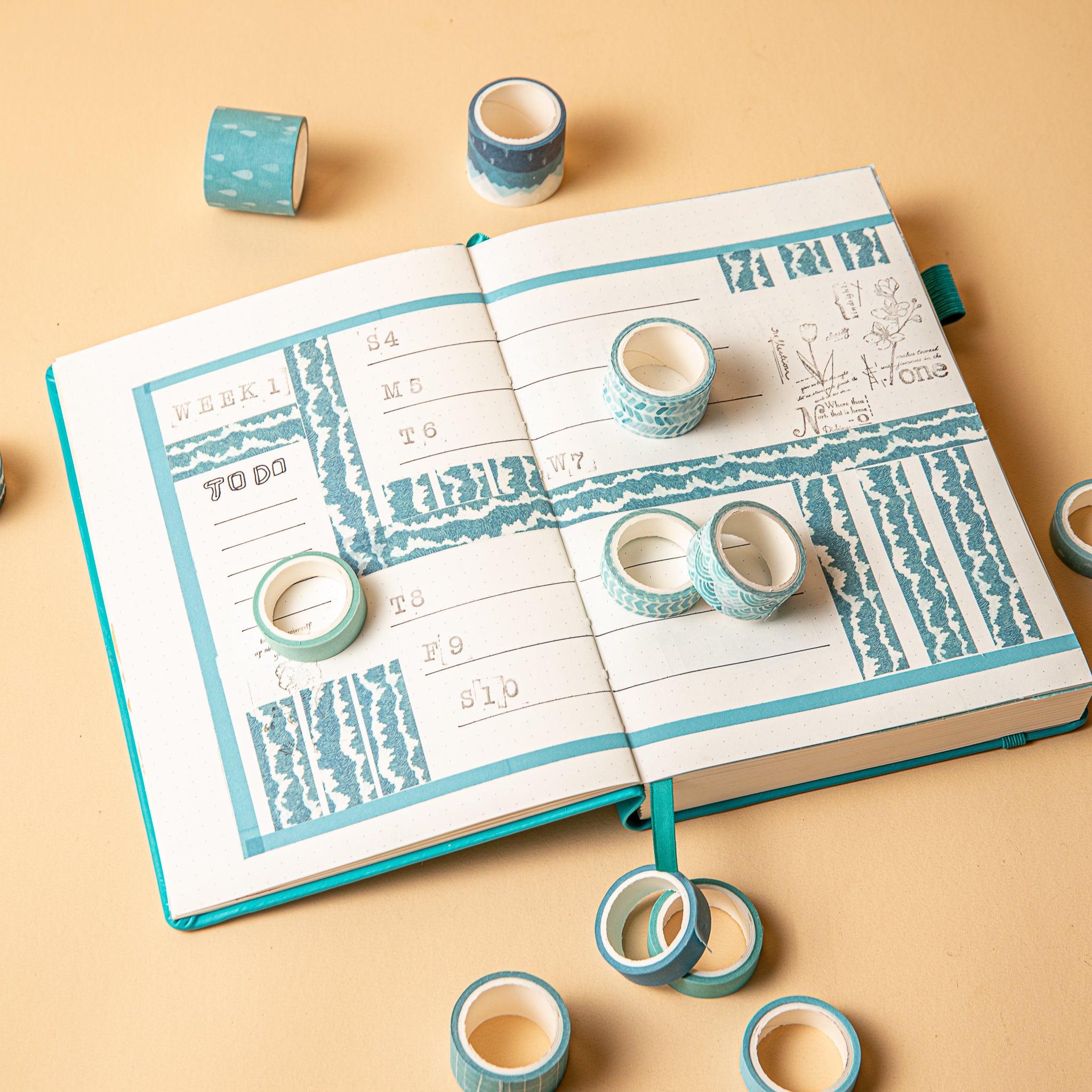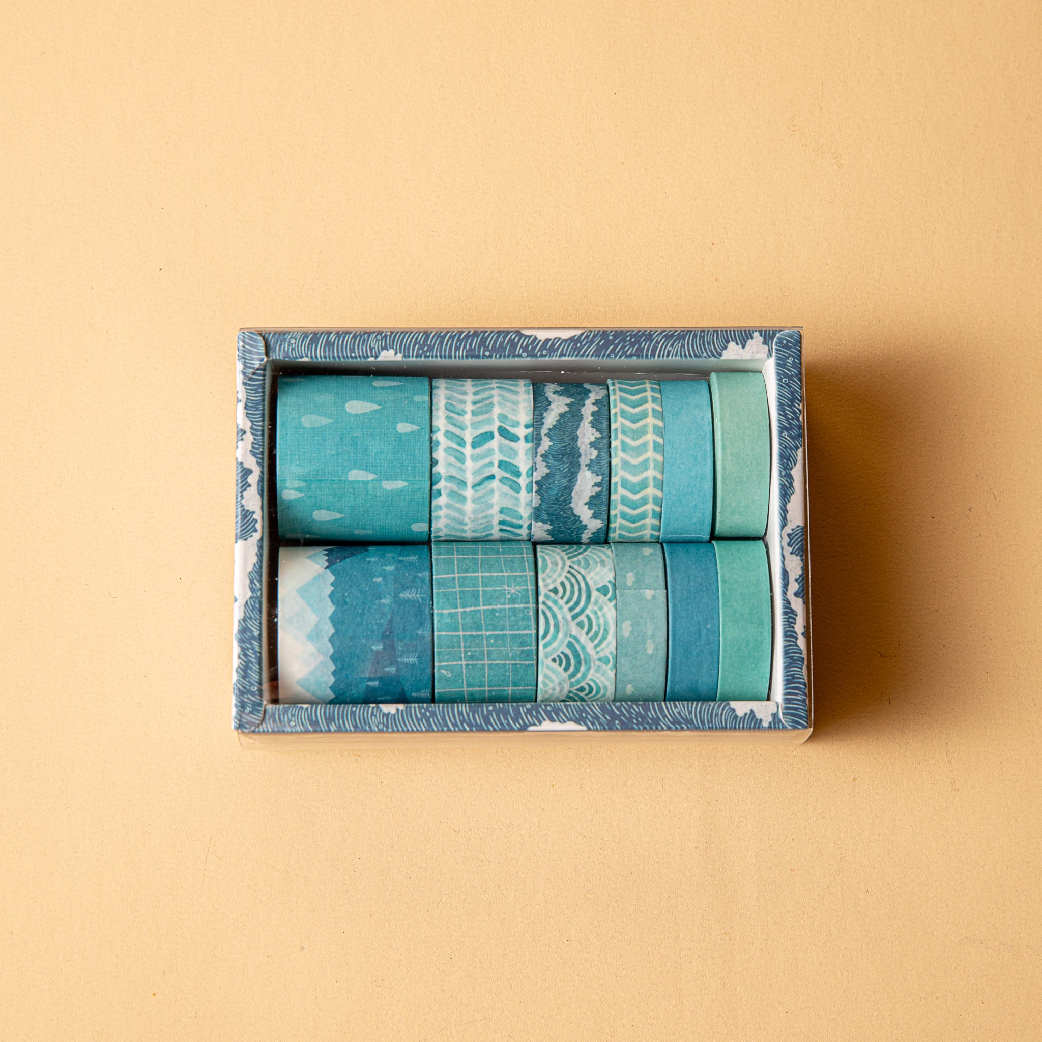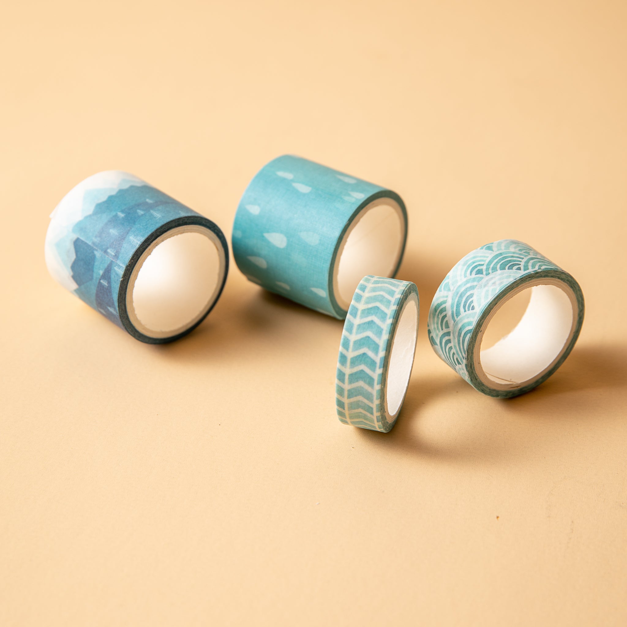 - Materials & Textures: Made of thin, flexible washi paper with a smooth, matte texture and a clear adhesive backing. Rolls have cardboard/plastic cores