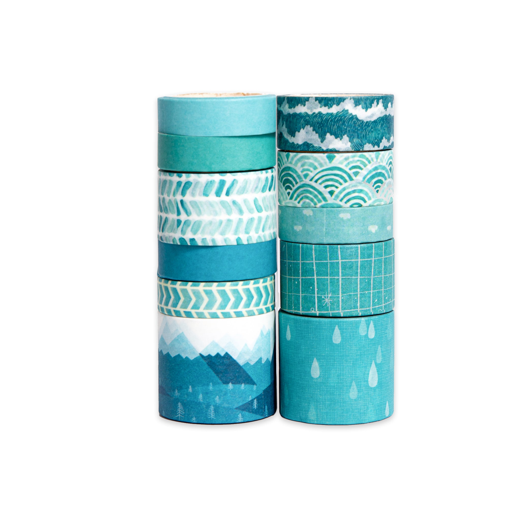 - Patterns: Solid colors, mountains, plaid, waves, raindrops, chevrons, zigzags, geometric waves, grid, and small cloud patterns