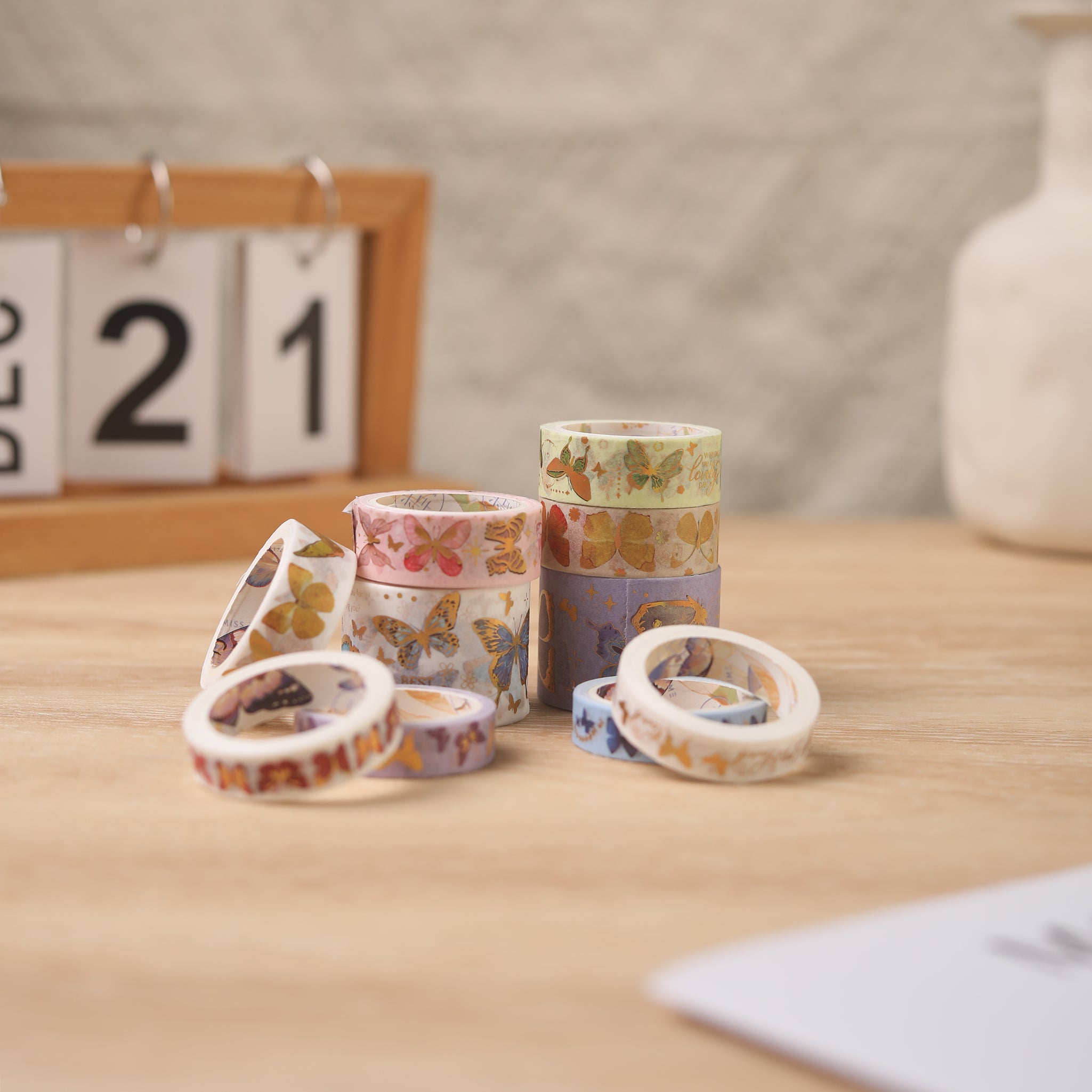 Enhance your bullet journals, scrapbooks, and DIY projects with this charming washi tape set. It features a dreamy and colorful design with gold accents, adding a special touch to your creative endeavors. The high – quality tapes are also perfect for wrapping gifts.