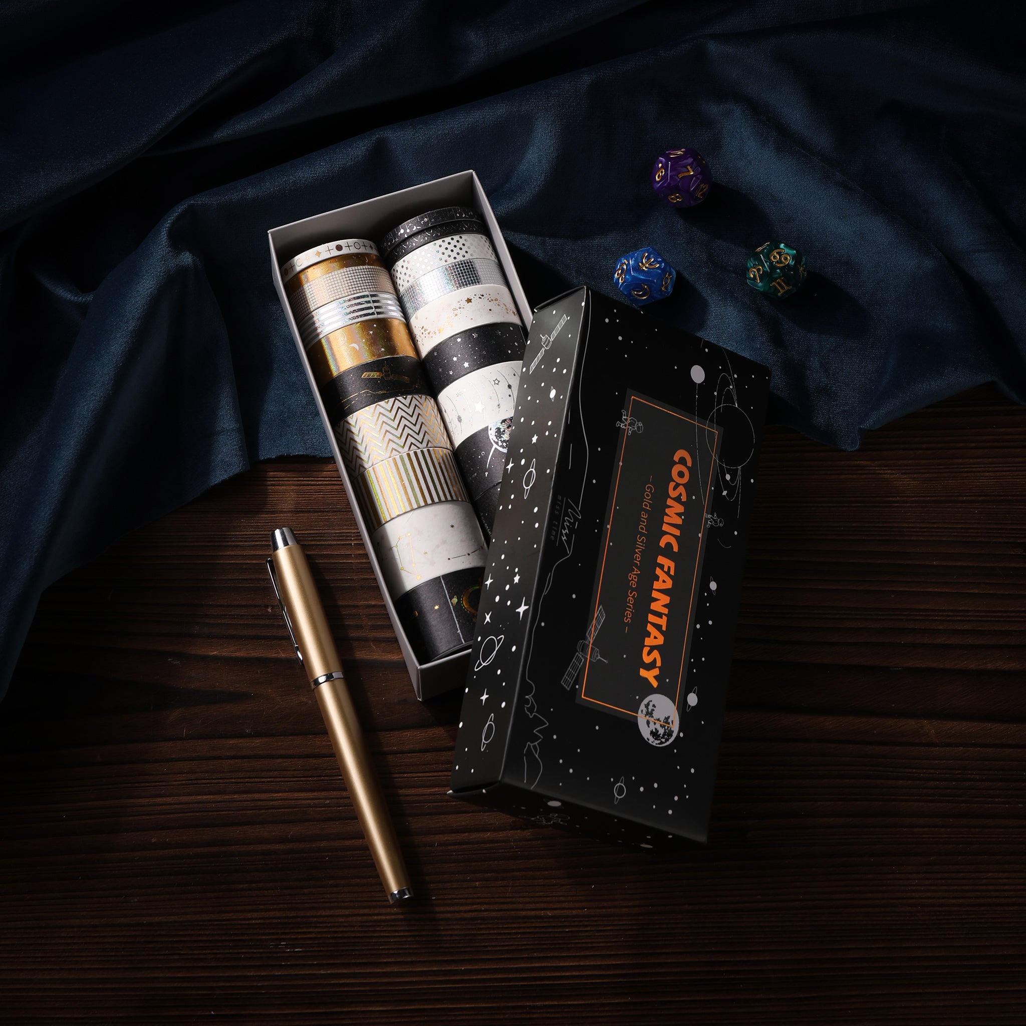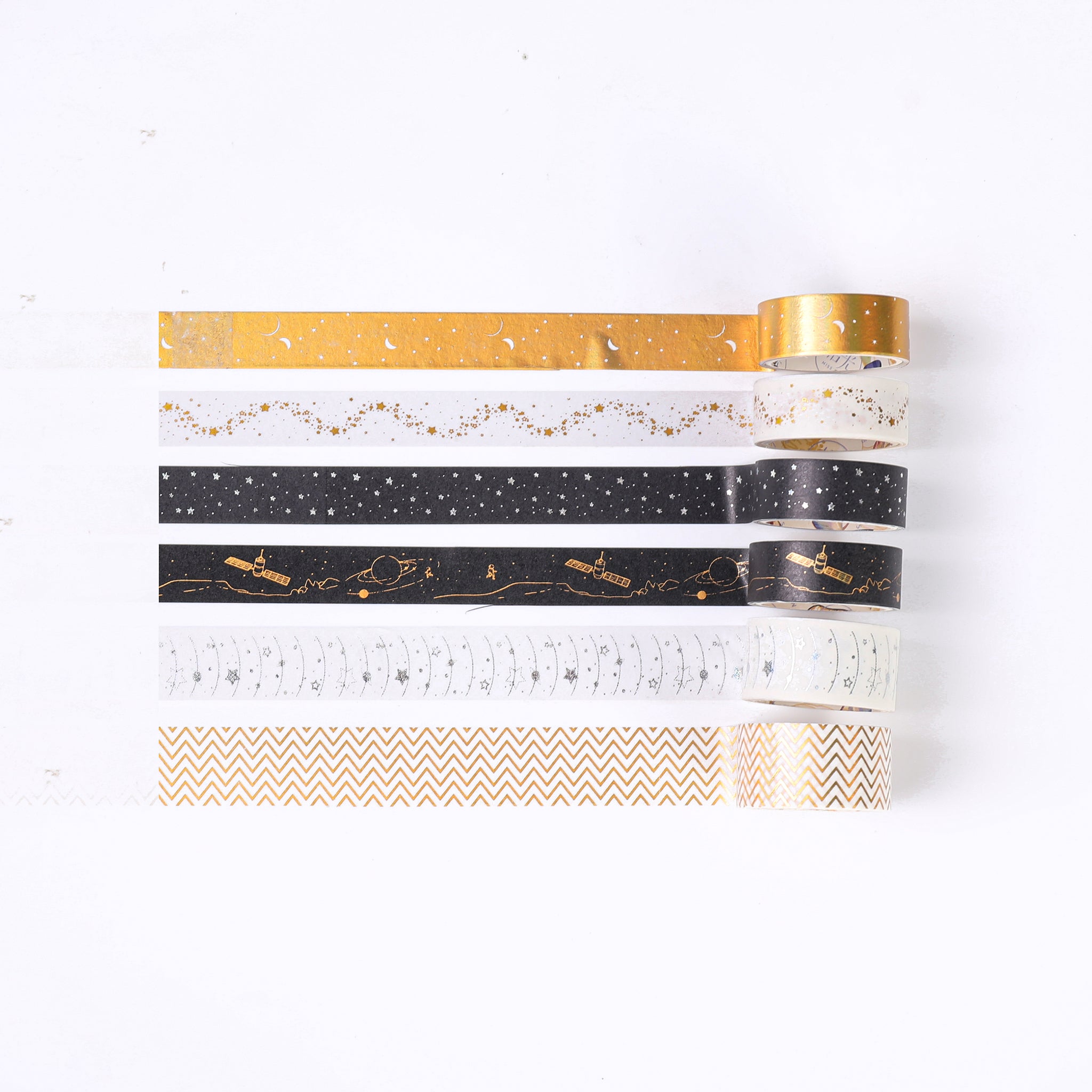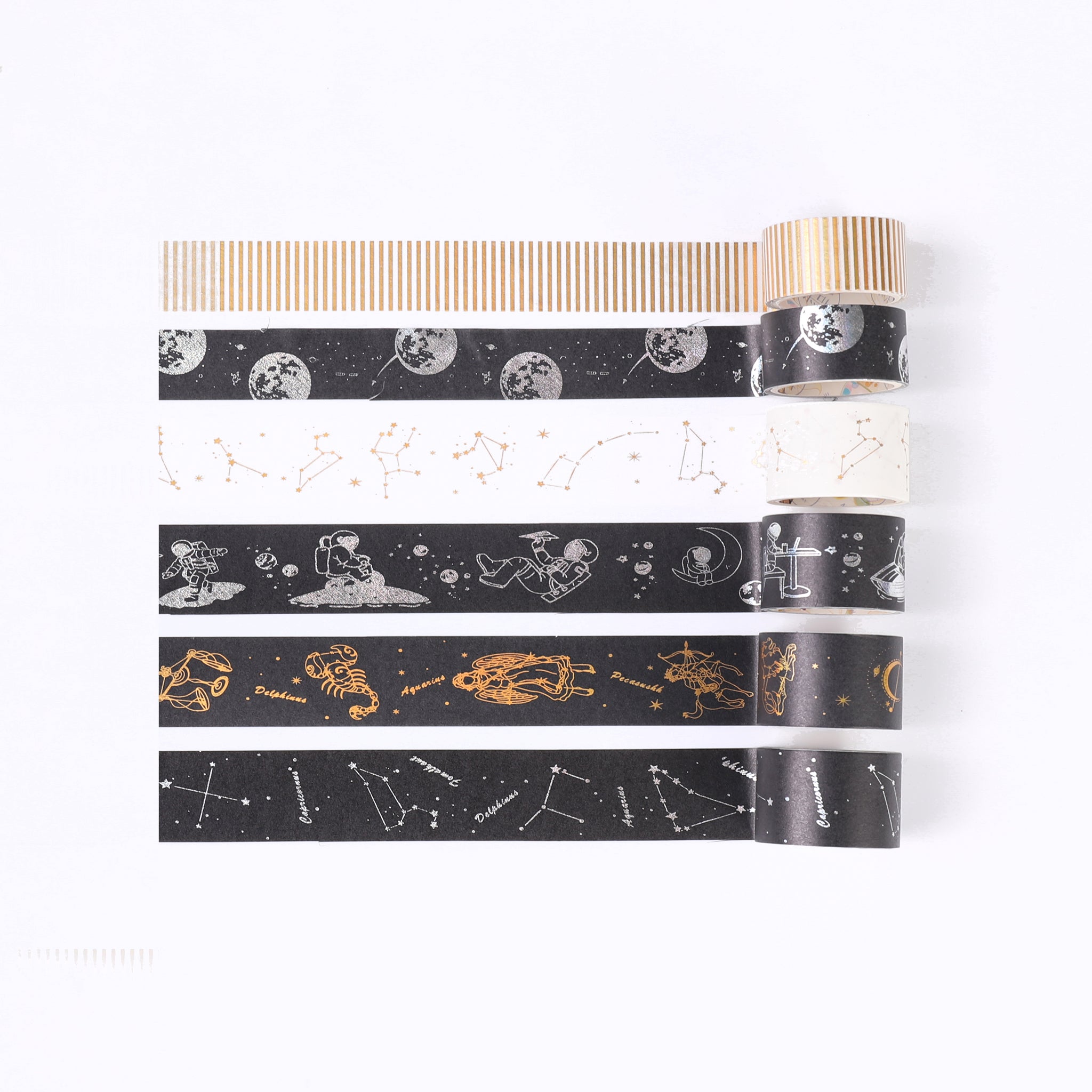 Indulge in the allure of the cosmos with this luxurious set of washi tape. Ideal for gifting, journaling, and crafting, it offers a unique way to bring your creative visions to life. With its cosmic themes and metallic accents, it’s like having a piece of the galaxy at your disposal.