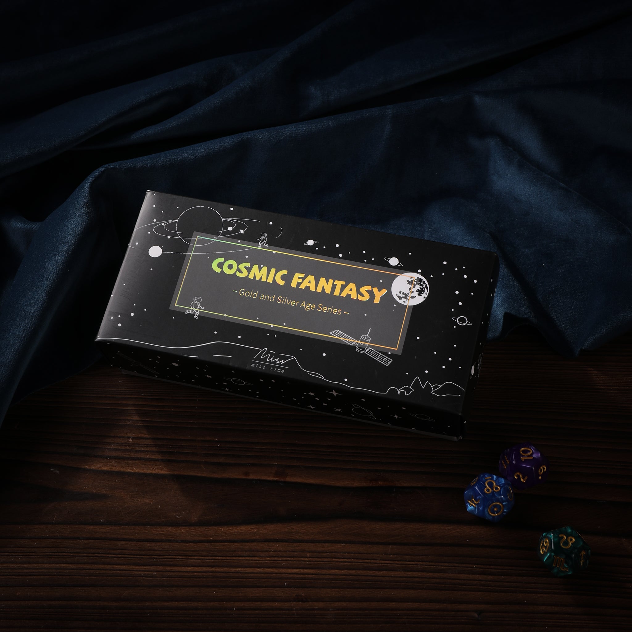 - Design Features: Space/cosmic theme with various patterns like chevrons, stripes, grid lines, dots, constellations, and illustrated space scenes
