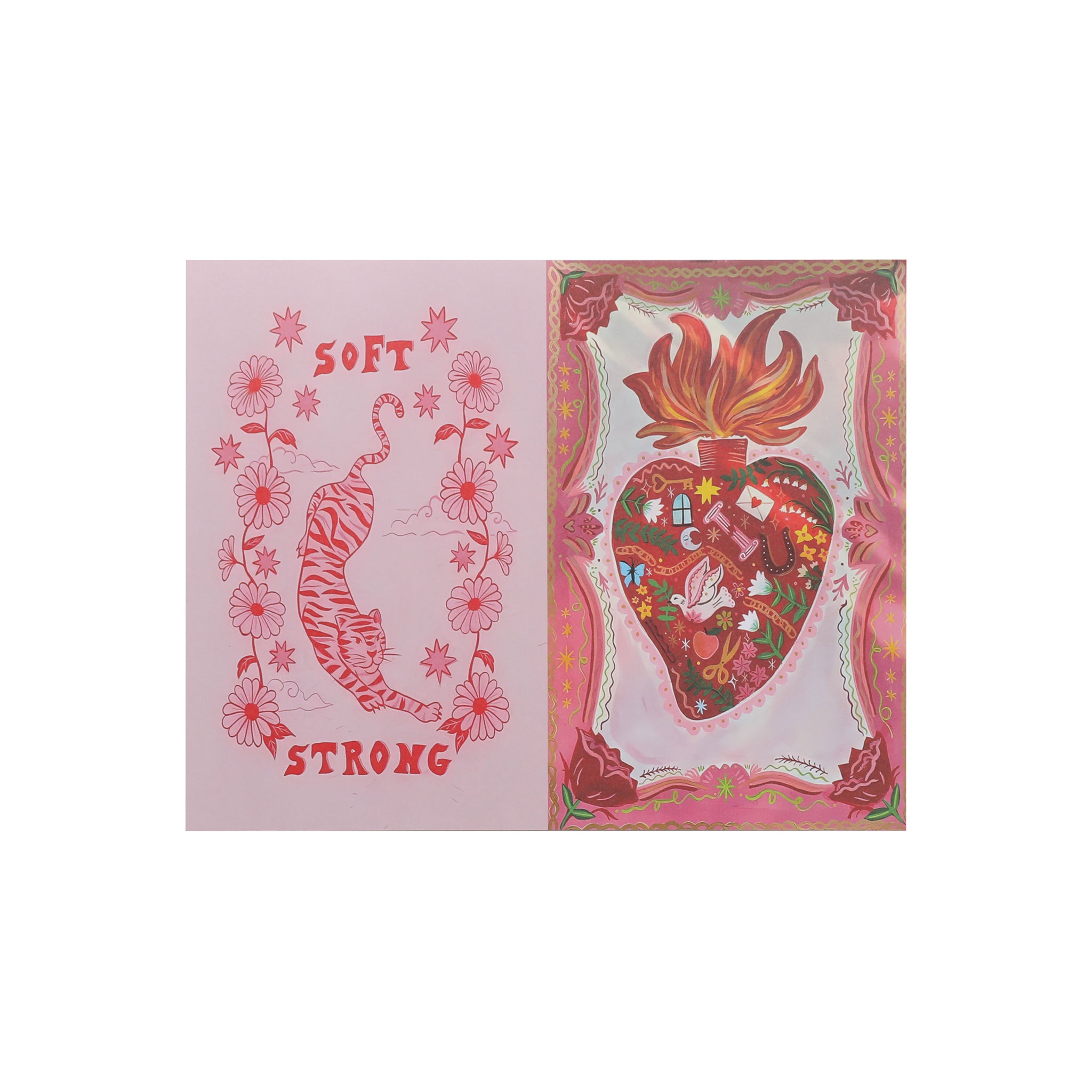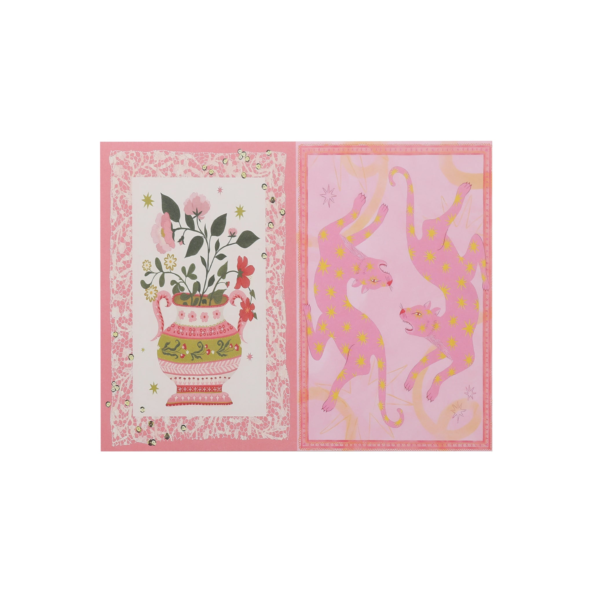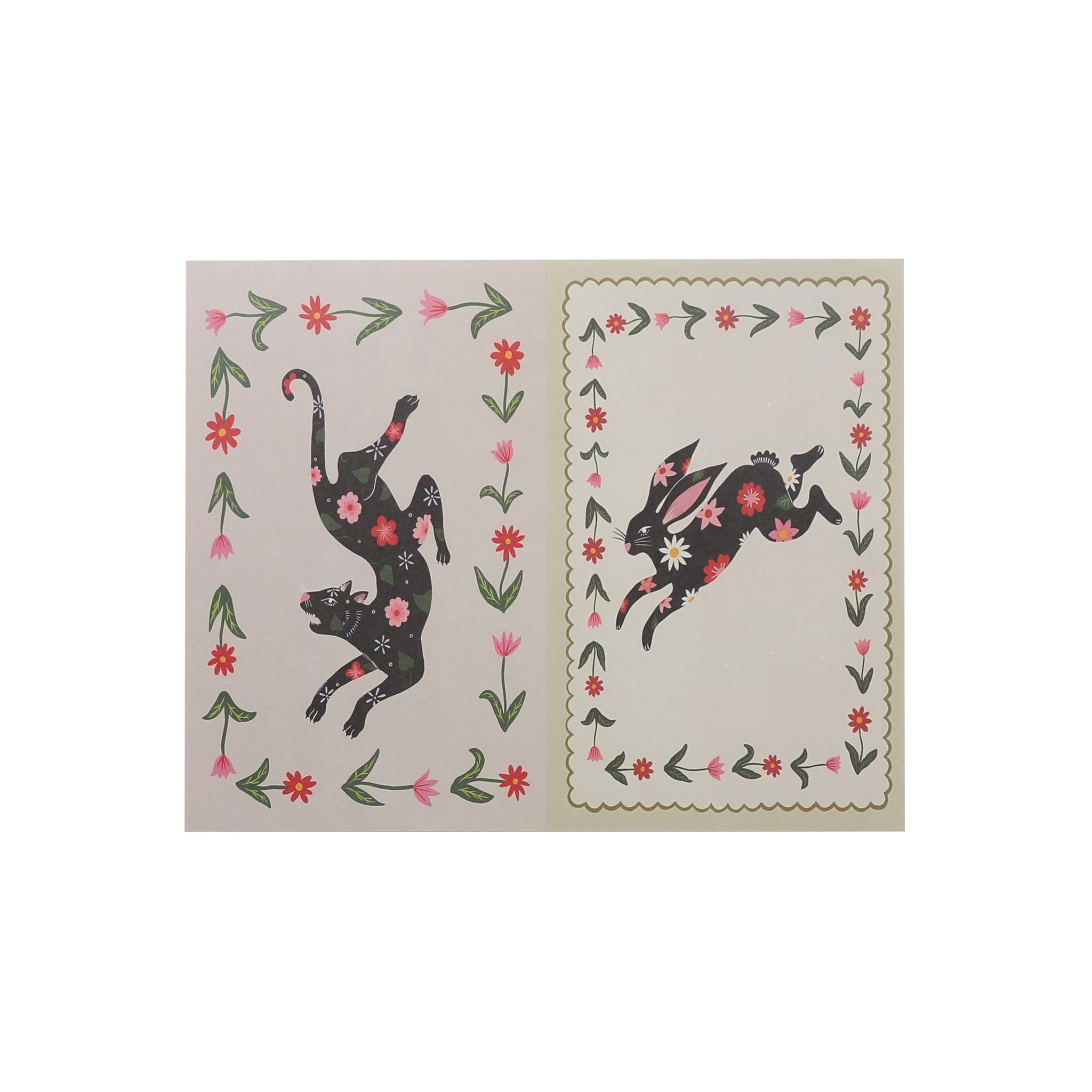 Each card is double – sided, with two distinct but thematically linked illustrations. The decorative borders, featuring ornate flowers, chains, stars, and ribbons, add a vintage and bohemian charm. The small size of the individual cards (≈2.5–4 inches wide when unfolded, forming a compact double – page spread of ≈5–8 inches total when open) makes them perfect for various uses. You can frame them as wall art for a bohemian or spiritual decor style, use them in journals, scrapbooks, or bullet journals for visual inspiration, give them as greeting cards for special occasions like Valentine’s Day or birthdays, or even use them as a portable oracle deck.