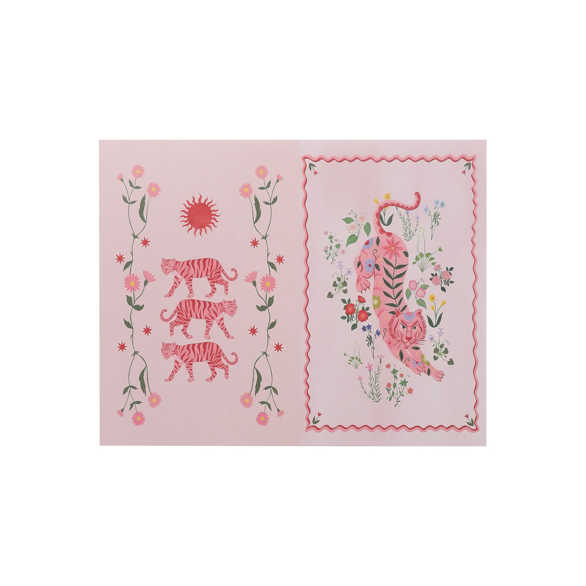 Dominant Colors Pink, red, green, yellow, with accents of white, black, and gold
