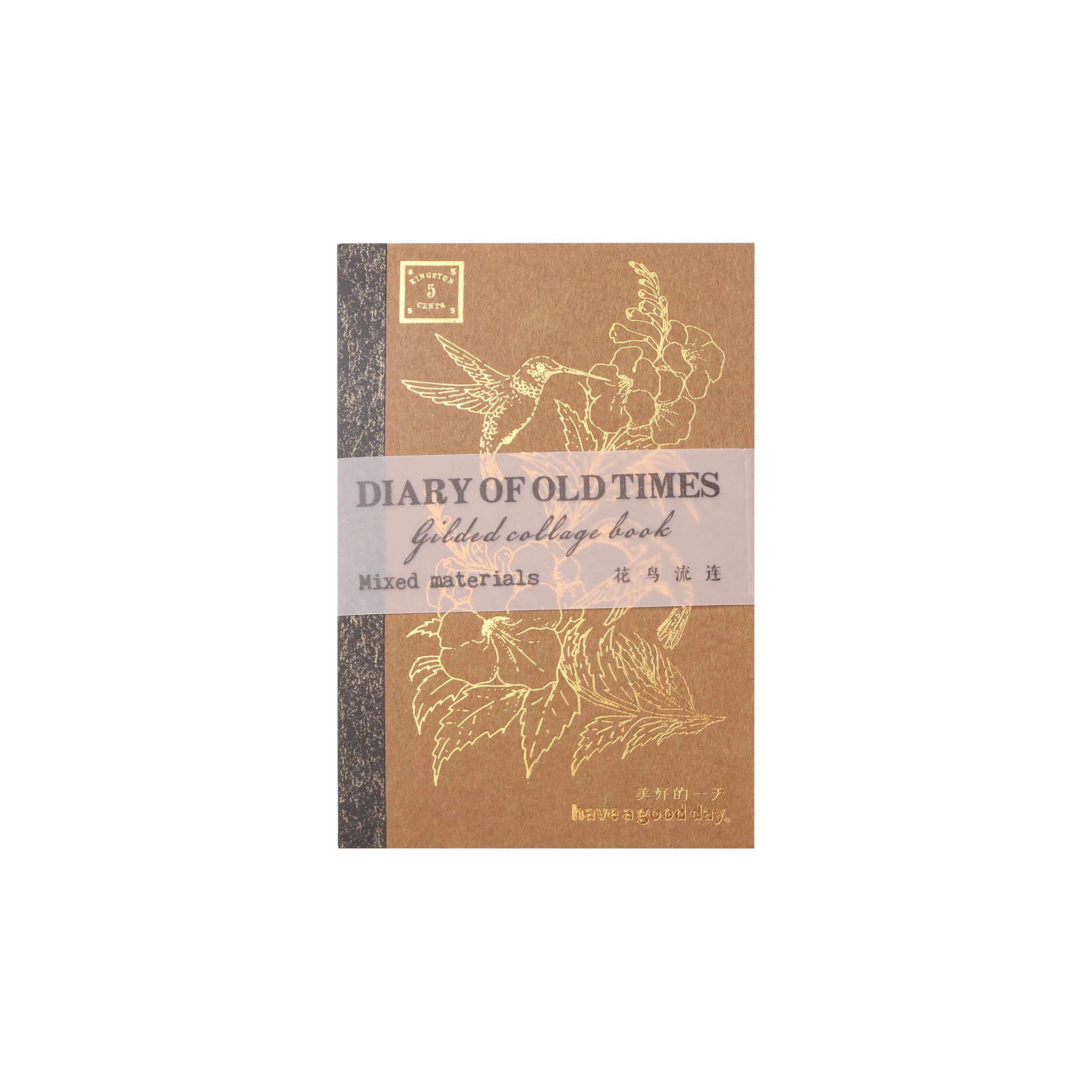 The color scheme of the diary is a harmonious combination of warm brown, gold, black, and pastel tones. Ornate bird and floral illustrations with delicate gold detailing, along with bilingual text in English and Chinese, create a multicultural and visually appealing aesthetic. The vintage – style stamp – like gold text, such as “KINGSTON 5 CENTS” and “VICTORIA 5 CENTS”, further enhances the old – times theme.