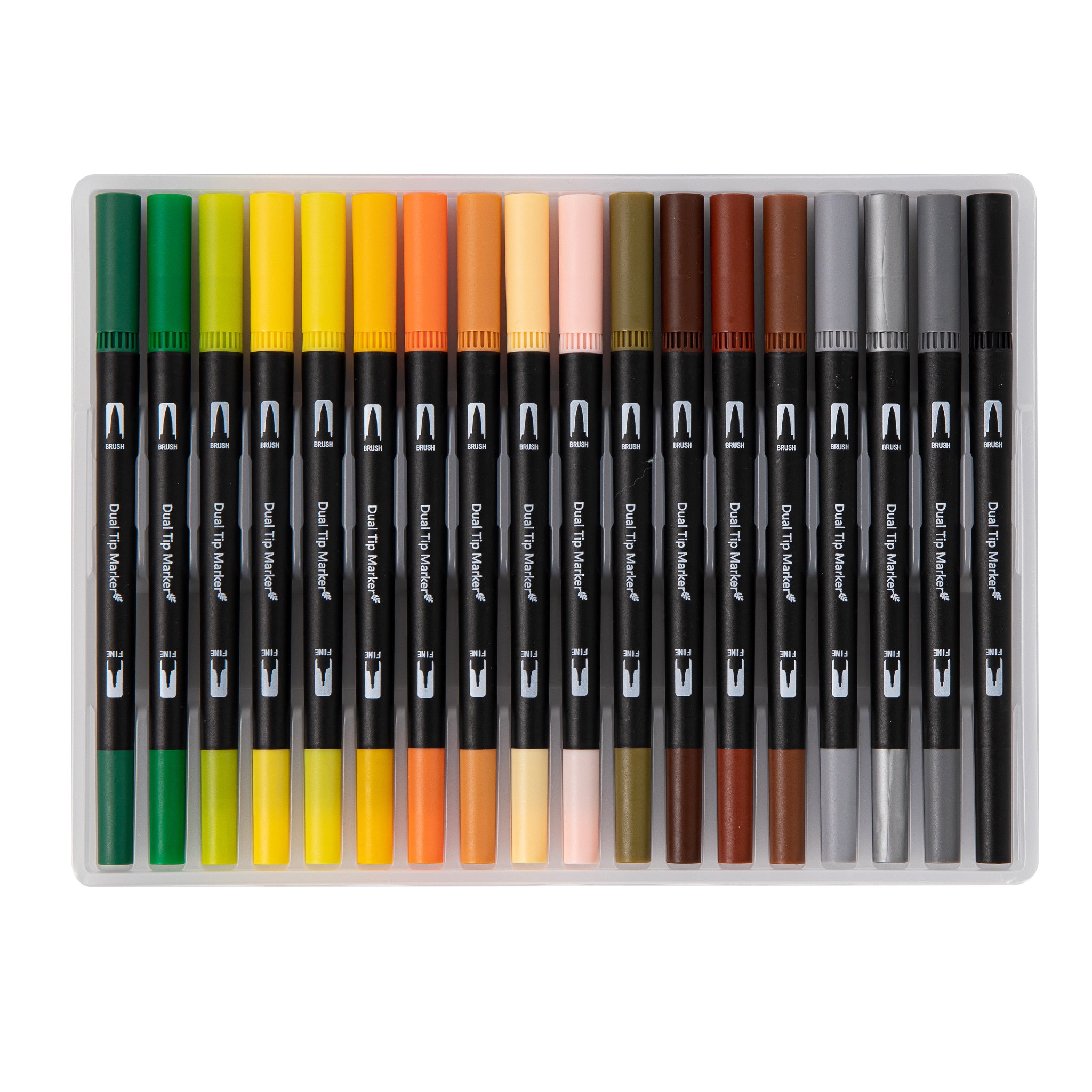 - Tip Types: Double – sided markers with a brush tip and a fine tip