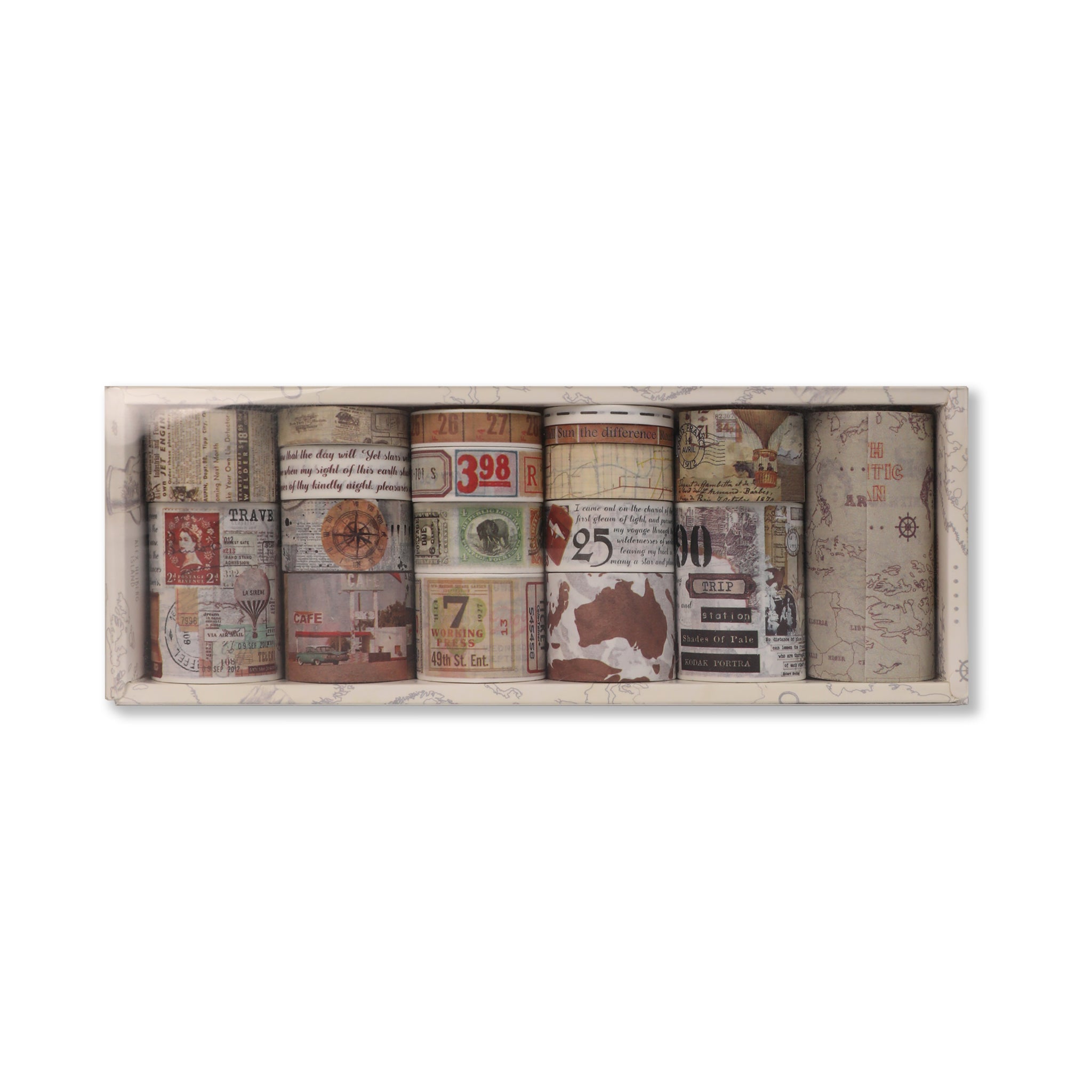Discover the charm of the Explore the Globe Washi Tape – Set of 18, a must – have for all crafting and journaling enthusiasts. This set consists of decorative washi tape rolls, each roll a masterpiece of vintage travel and ephemera – inspired designs that instantly add a touch of nostalgia to your projects.