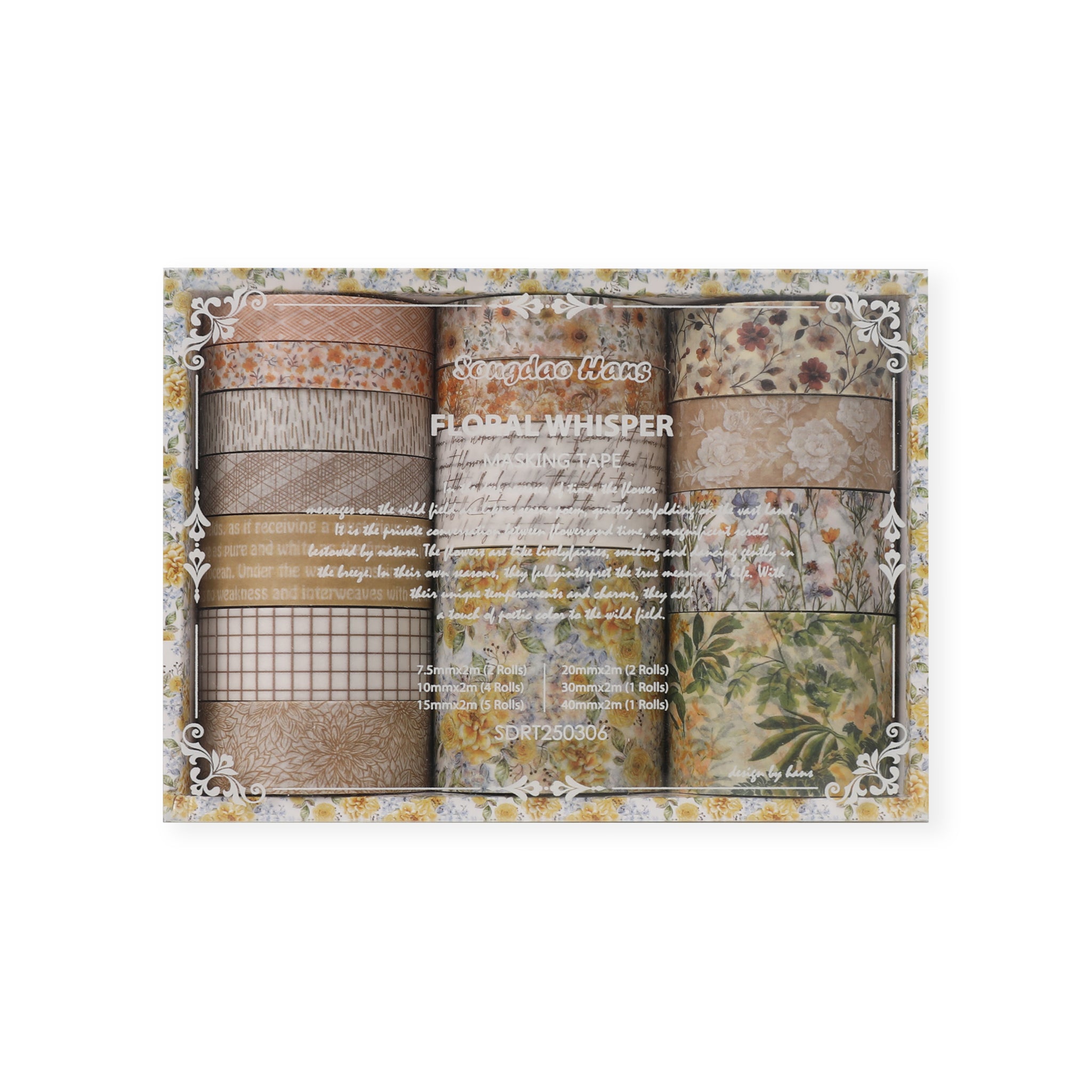 Introducing the Floral Whisper Washi Tape – Yellow – Set of 15, a dreamy collection designed for all your creative endeavors. This set is a treasure trove for crafting enthusiasts, offering a harmonious blend of romantic floral themes and versatile patterns.