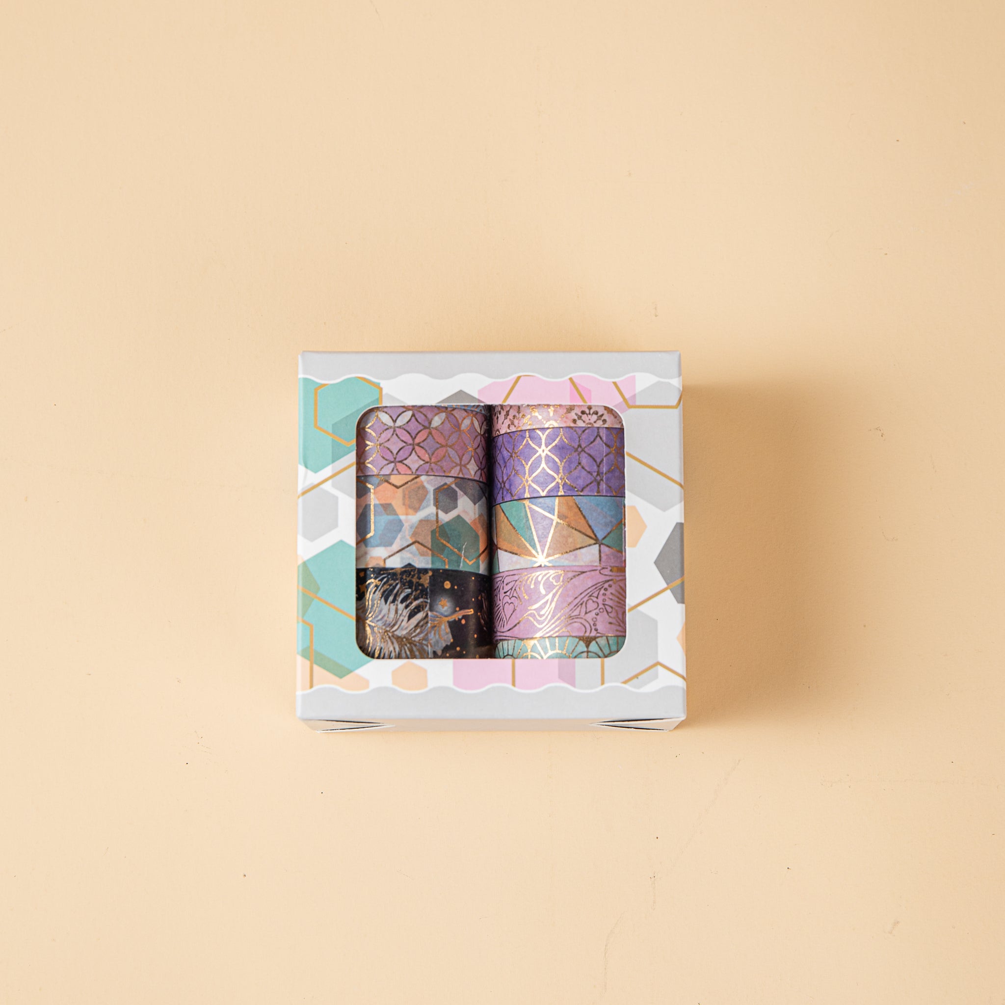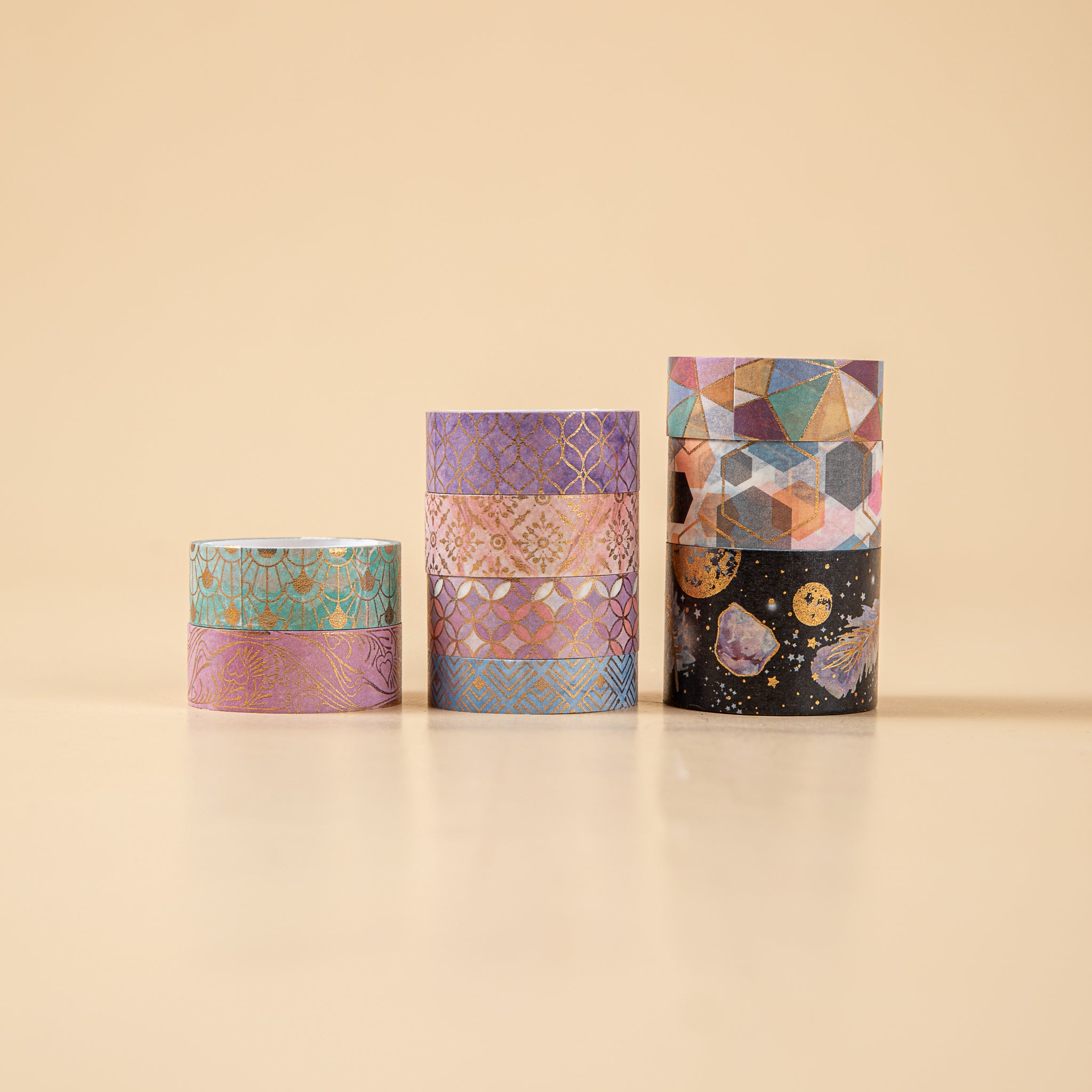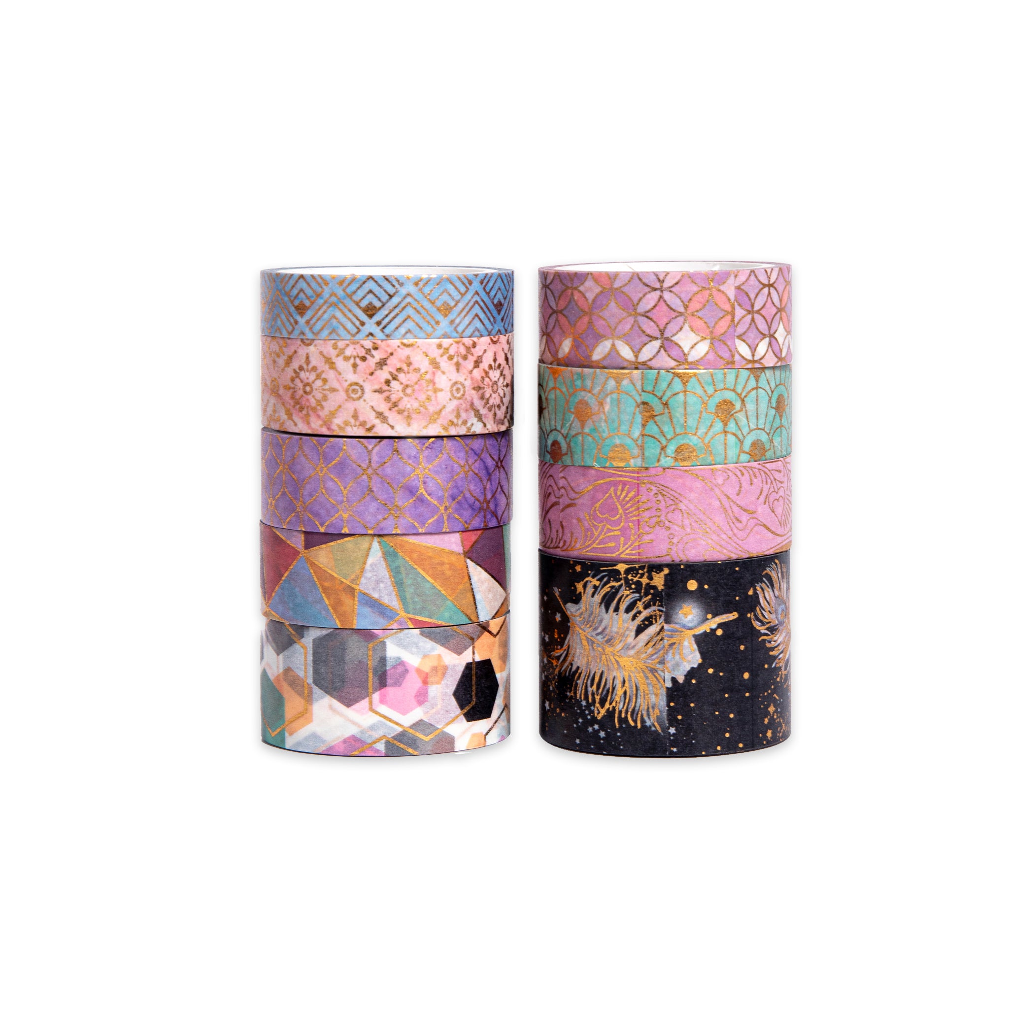Enhance your crafting and decor projects with this premium set of washi tape. It offers a variety of patterns and comes with gold accents for an elegant touch. Ideal for adding a creative flair to scrapbooks, planners, and gifts.