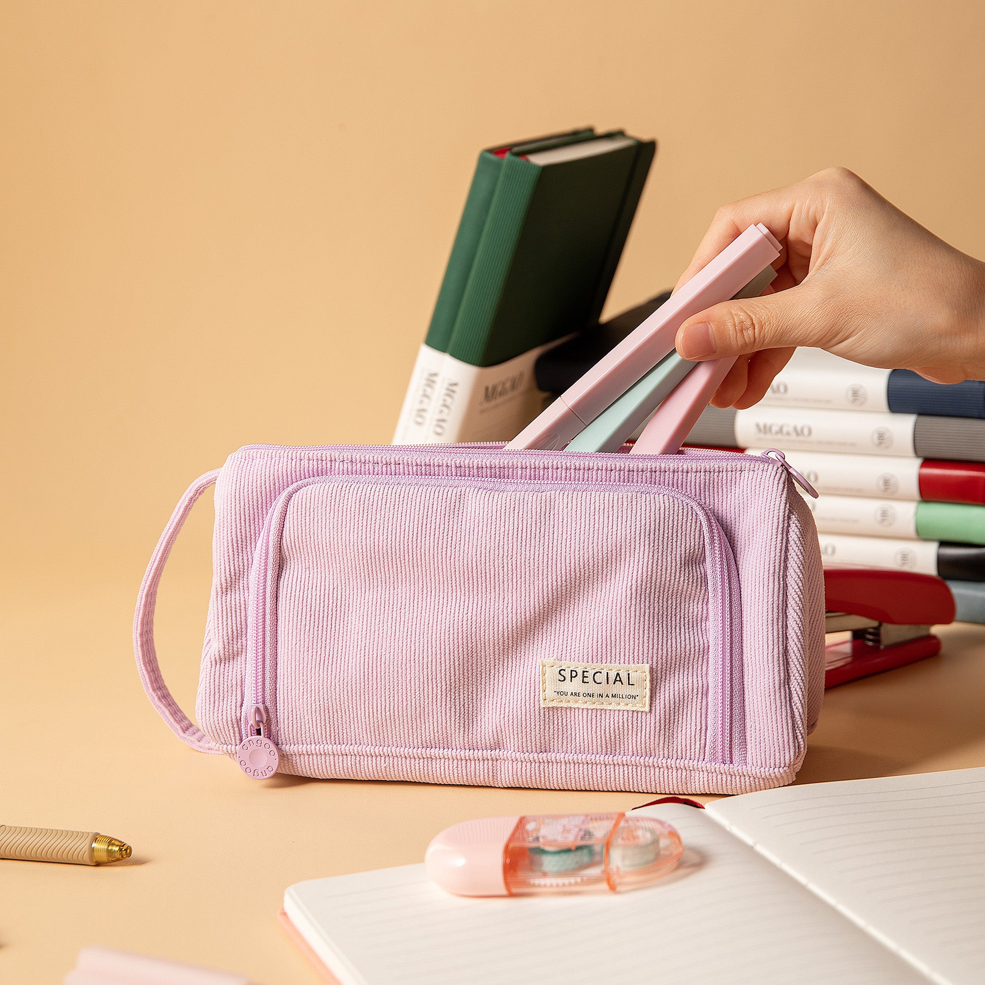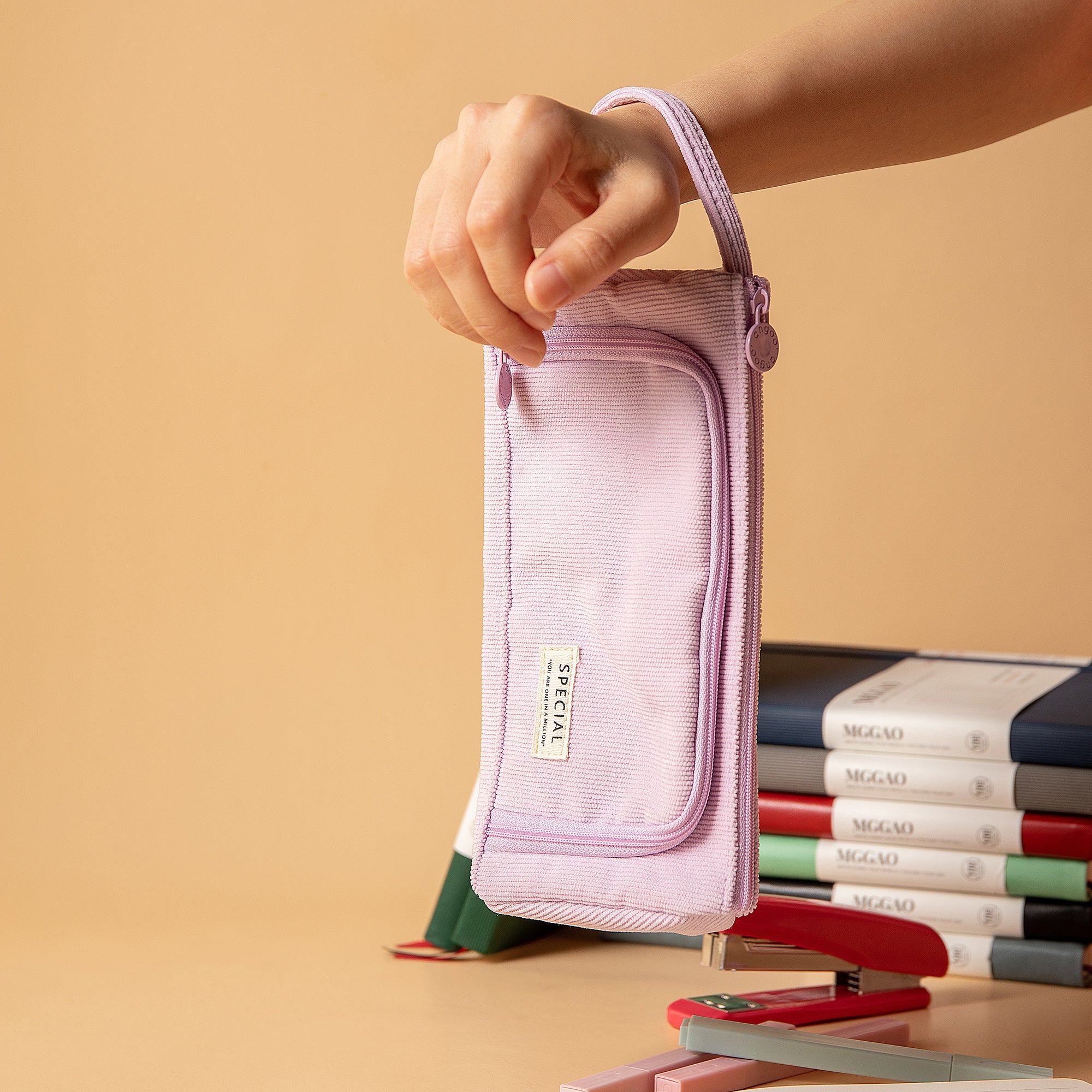 This handheld pencil case is a practical and stylish solution for organizing your writing essentials. It offers ample storage space and convenient features, making it perfect for students and stationery lovers on the go.