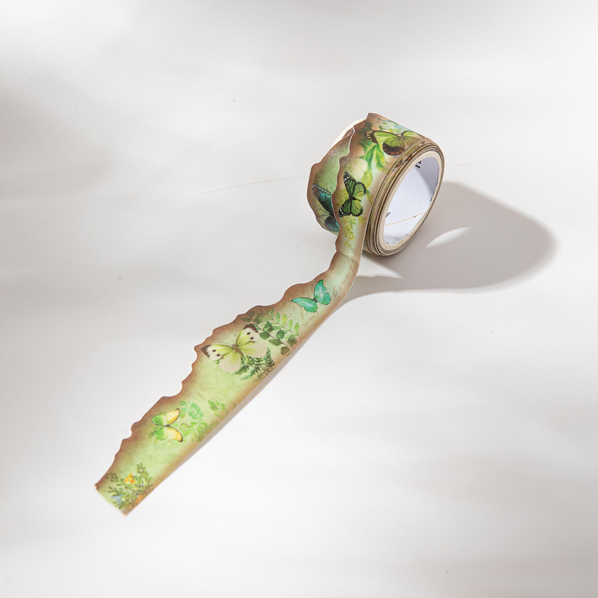 - Design: Repeating nature motifs (butterflies, ferns, leafy greenery) with a whimsical, vintage style