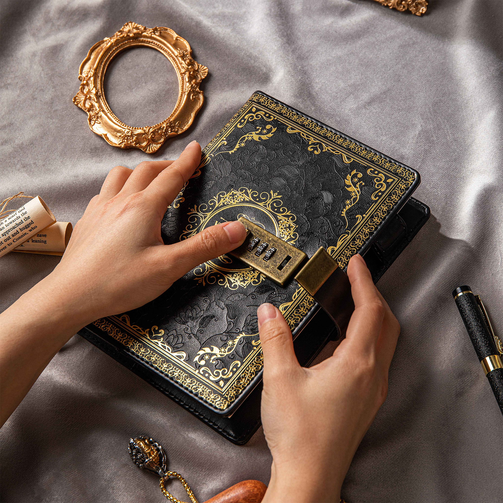 Discover a luxurious journal that combines style and functionality. With a beautiful 3D vintage flower design and a secure lock, it’s the perfect place to your thoughts and ideas. It also comes with useful features like a pen holder and ribbon bookmark.