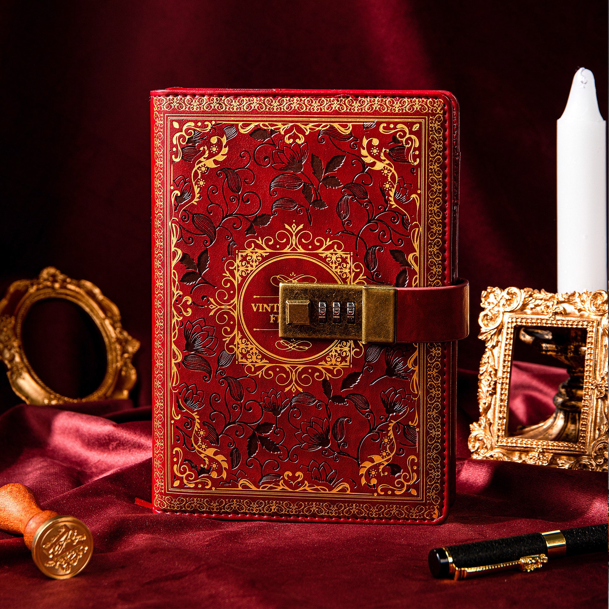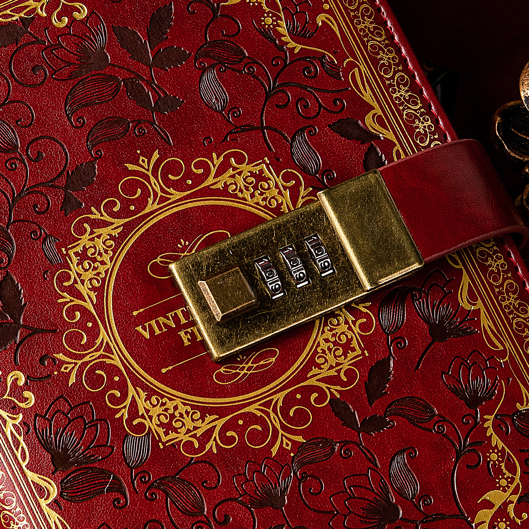Indulge in the charm of a vintage journal that combines style and functionality. With its exquisite design and meticulous craftsmanship, it offers a secure and elegant way to record your thoughts and ideas.