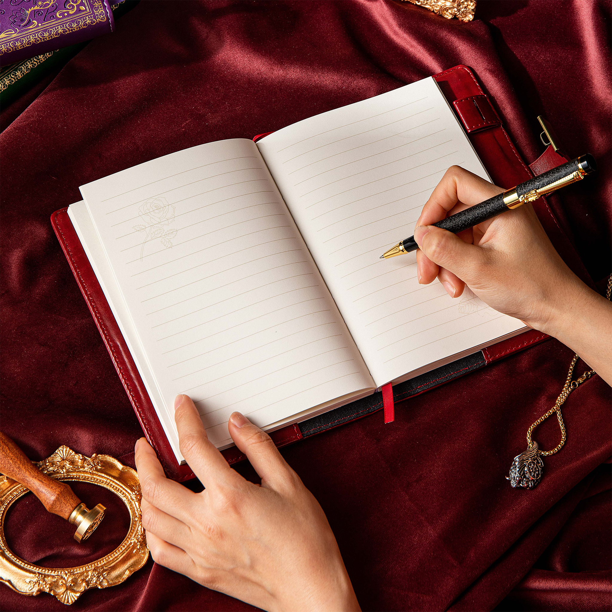 - Convenient Accessories: Comes with a pen holder and a ribbon bookmark