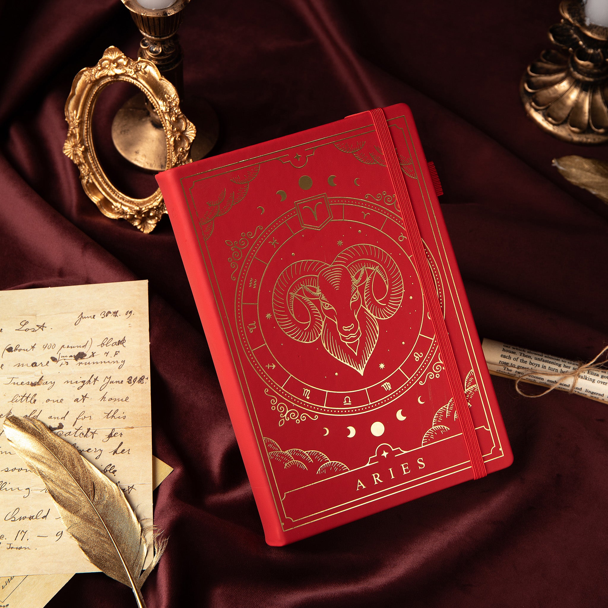 - Design: Features a powerful Aries symbol with stunning gold foil design on a classic leather cover