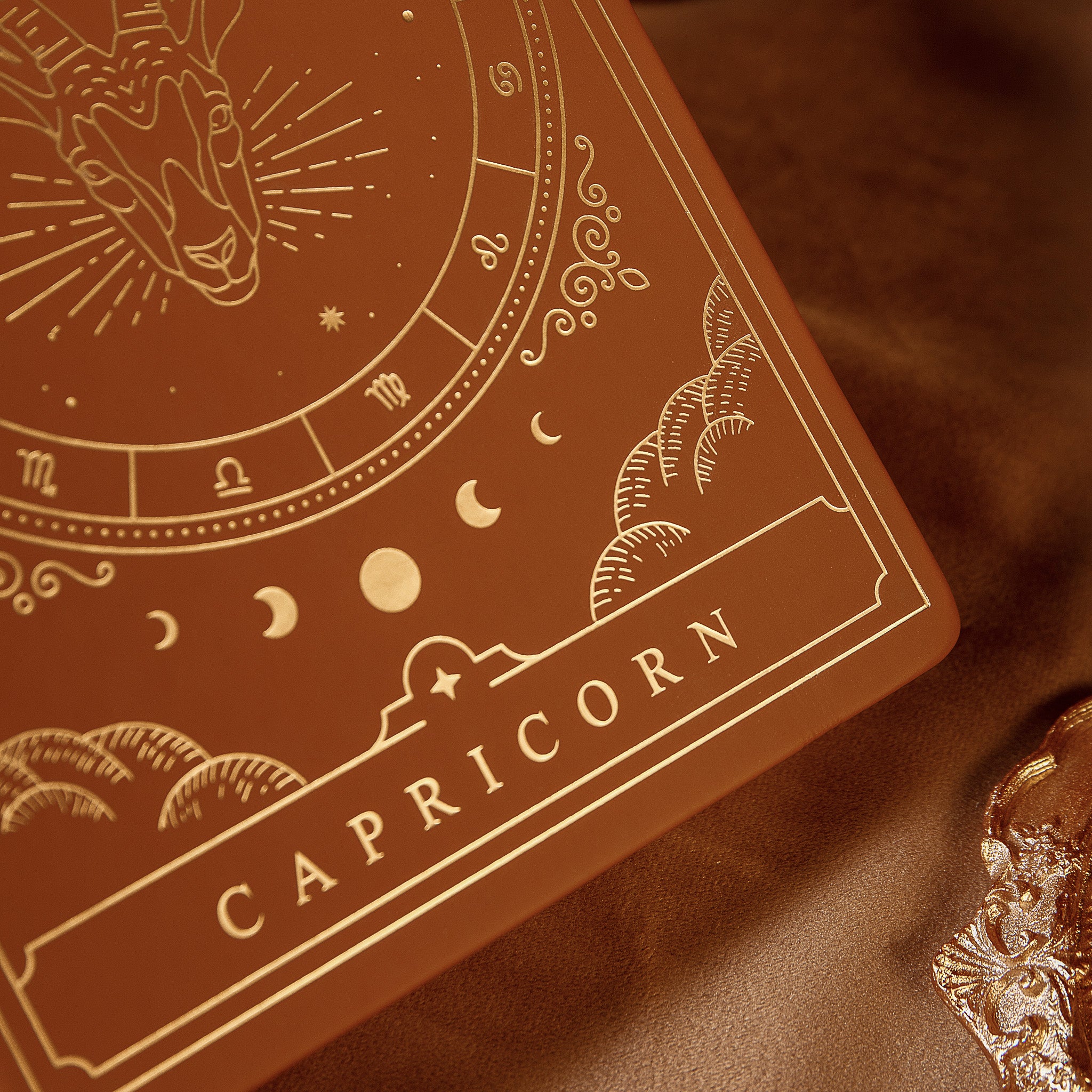 - Design: Features a powerful Capricorn symbol with a stunning gold foil design