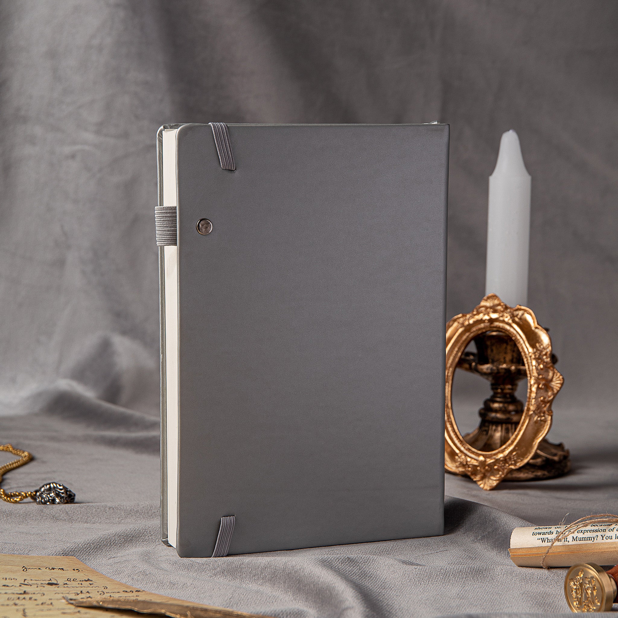 - Cover Material: Smooth, matte hardcover (likely synthetic leather or coated paper)