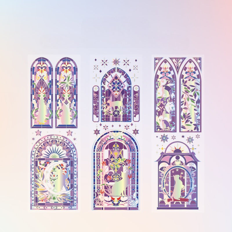 Transform your space with our Luminous Stained Glass Window Stickers – Purple – 3 Sheets. These decorative sticker sheets are a true work of art, featuring the captivating theme of the “Strange Fate of Cats”. Each set comes with 3 sheets, offering a variety of artistic stickers that showcase cats within stunning stained – glass window motifs.
