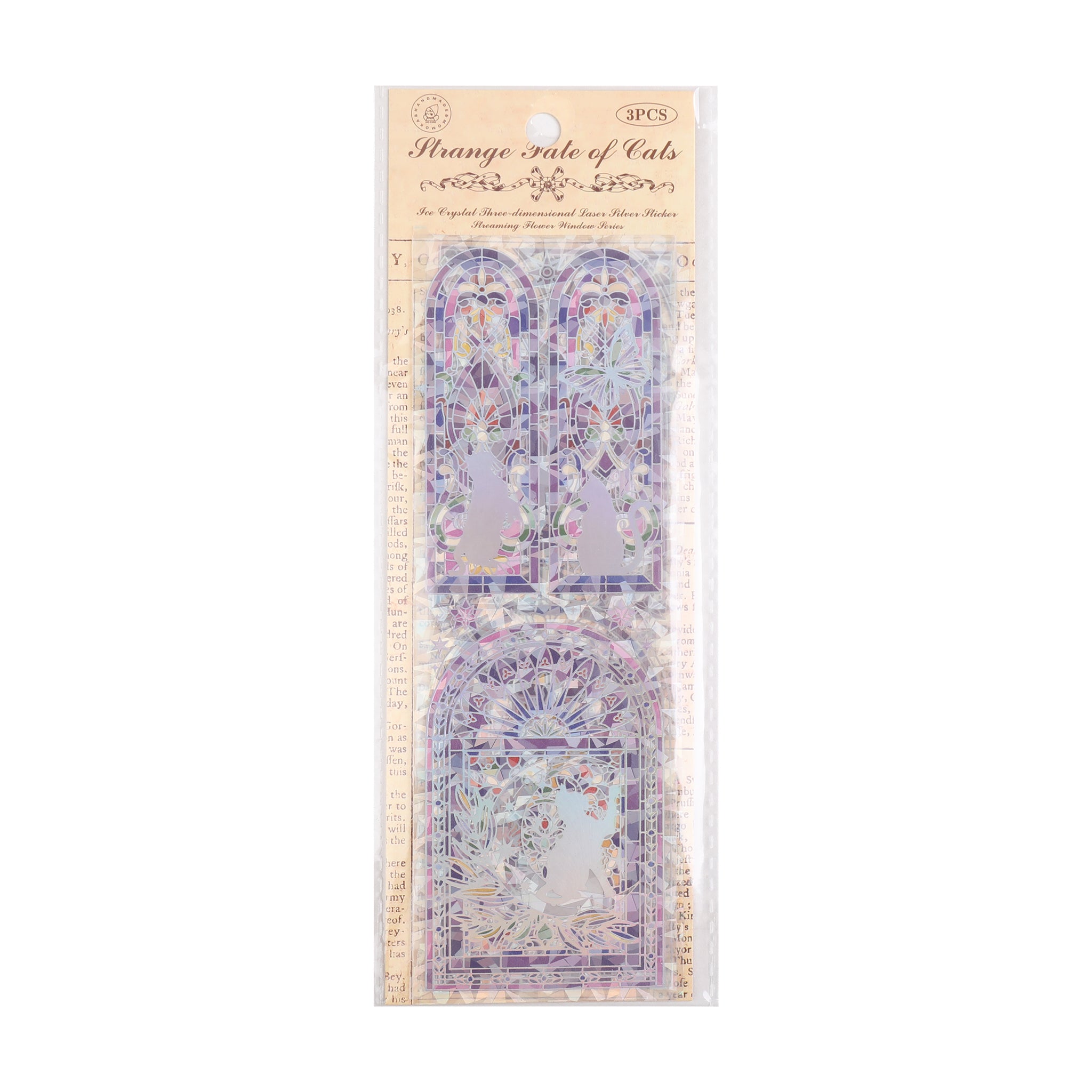 These stickers come with several remarkable features. The iridescent, light – refracting coating provides a holographic detail that gives them a unique look. The layered, fragmented design creates a subtle 3D “pop – up” effect when viewed at an angle. The “Strange Fate of Cats” title suggests a whimsical, fantasy narrative. Moreover, their thin, flexible material makes them versatile for application on notebooks, laptops, water bottles, scrapbooks, and more.