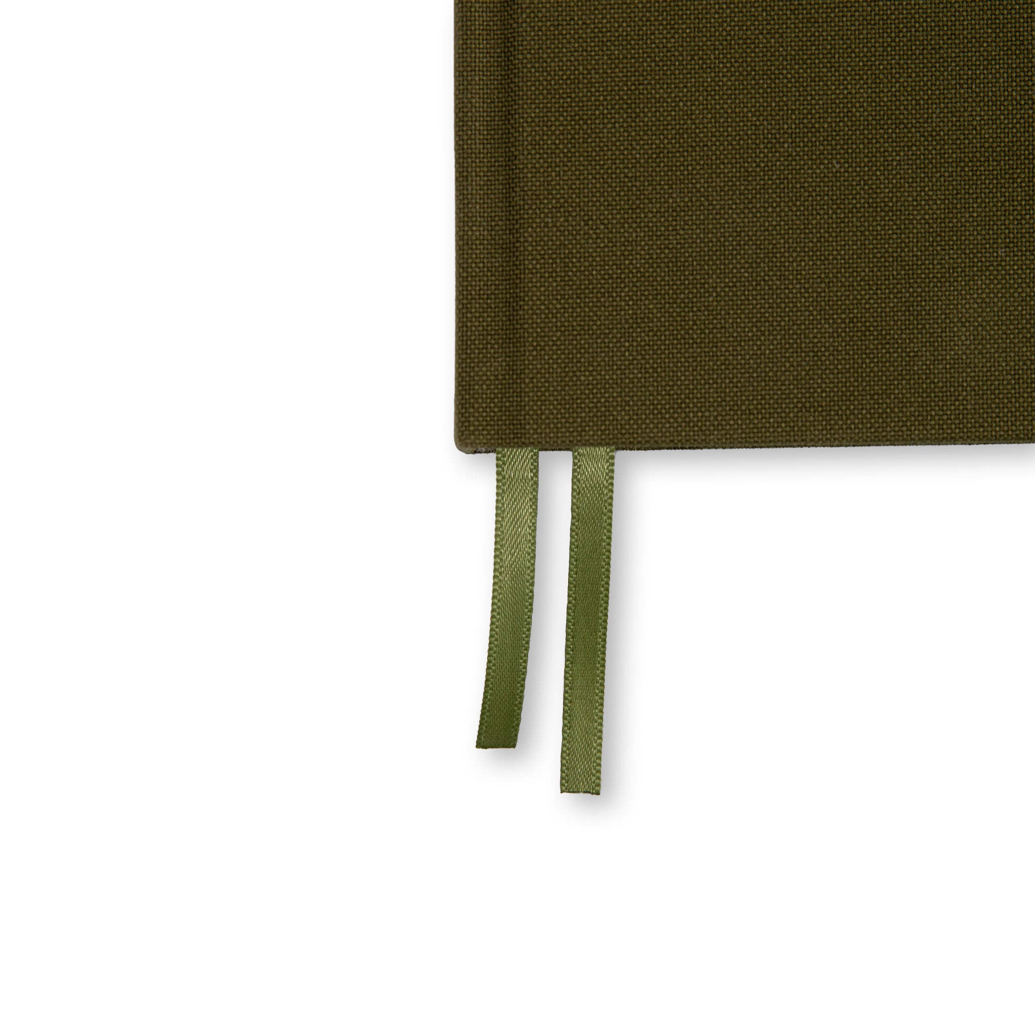 - Accents: Green satin ribbon bookmarks, colorful tabbed dividers, and soft pink floral watercolor illustrations on the inside cover