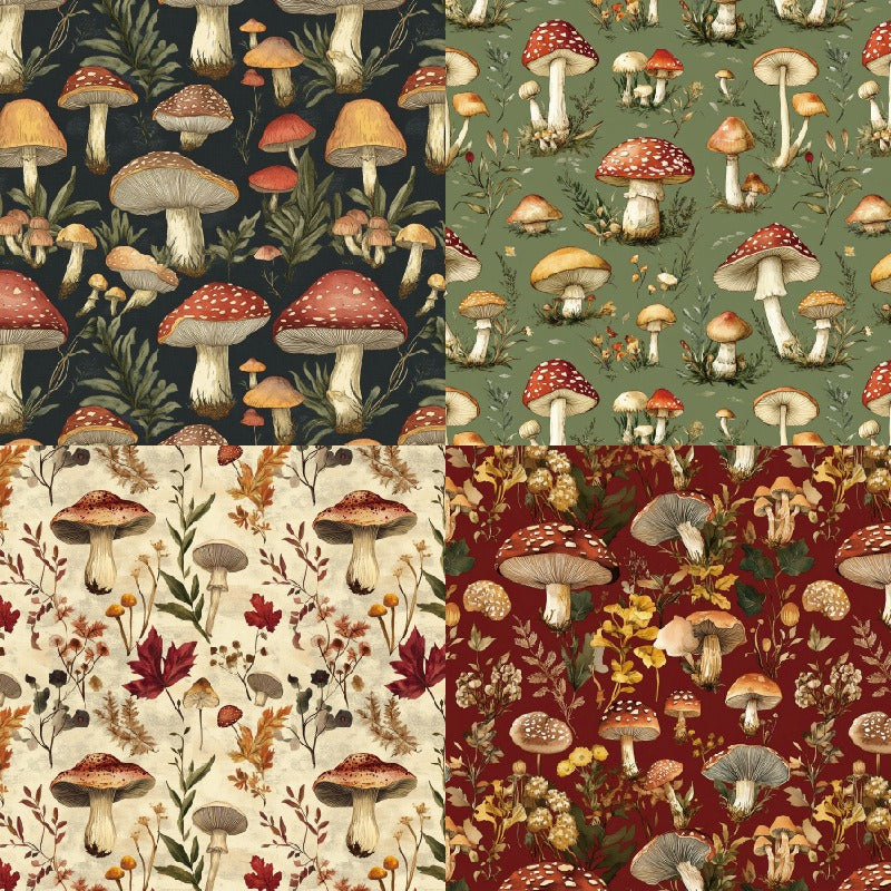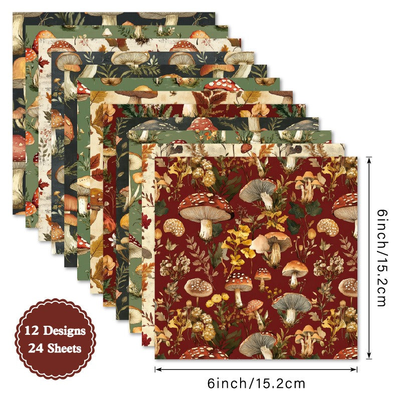 - Design Variety: 12 exclusive mushroom designs with each pattern printed twice, totaling 24 sheets