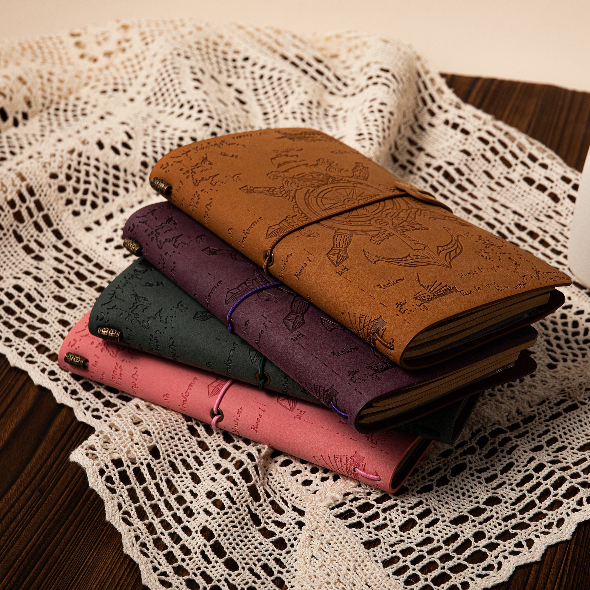 - Embossed Design: Unique nautical/vintage travel motifs like compass rose, ship wheel, anchor, and old – world map text