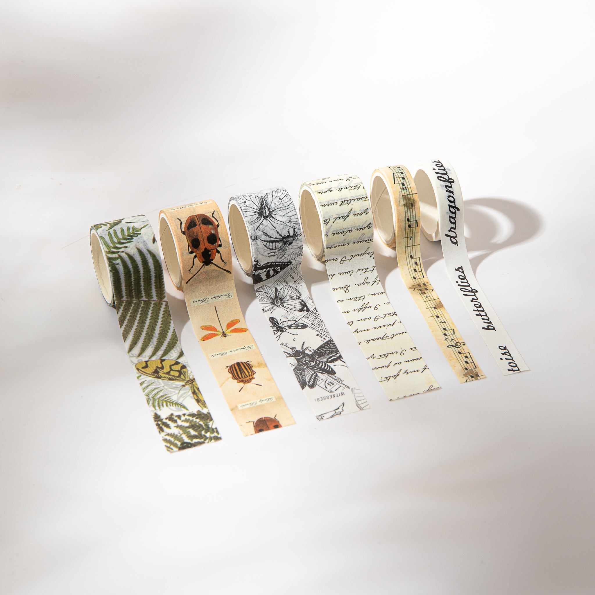 - Patterns: Insects, butterflies, sheet music, words, and vintage objects