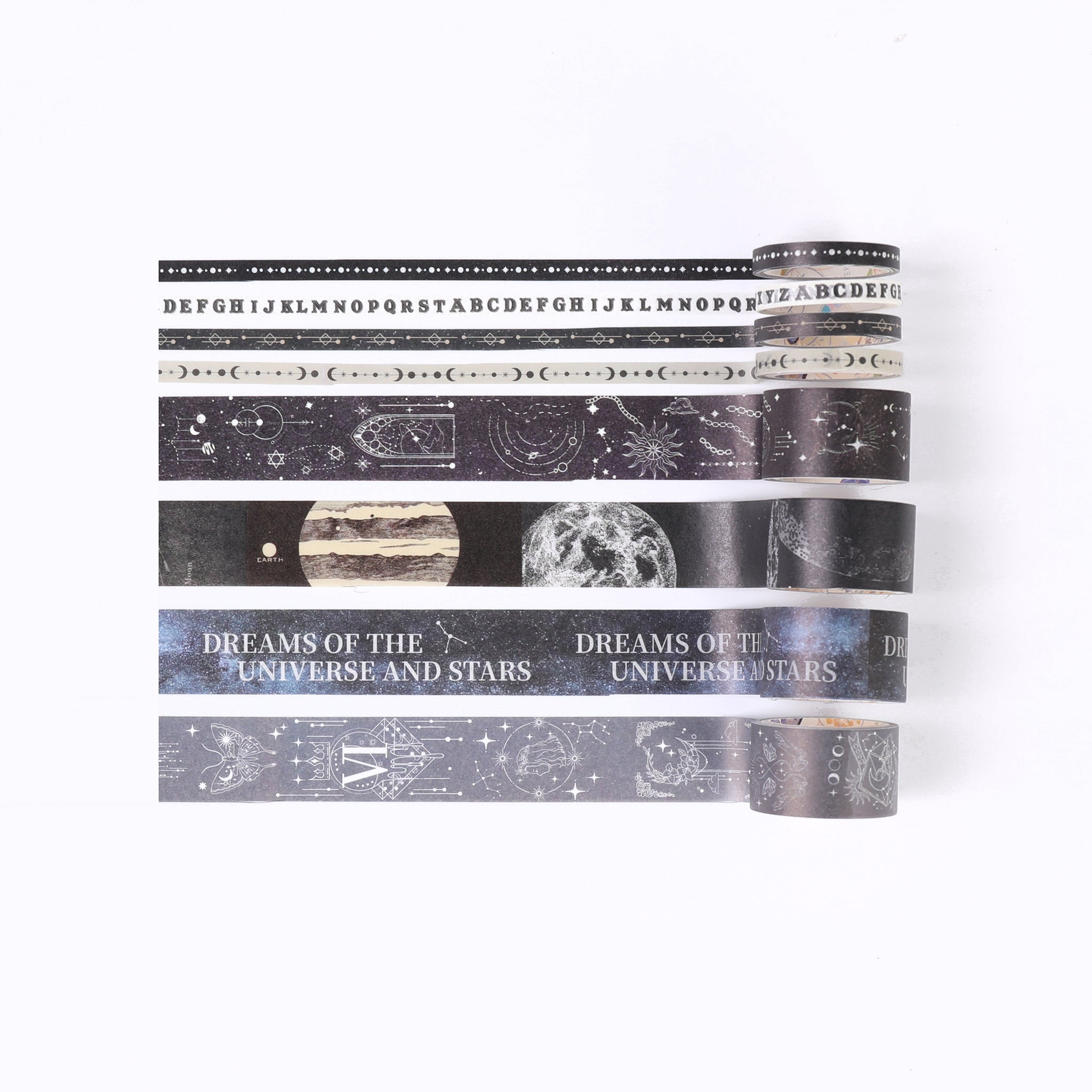 - Design Features: Space – themed graphics on the box, intricate cosmic designs on tape strips