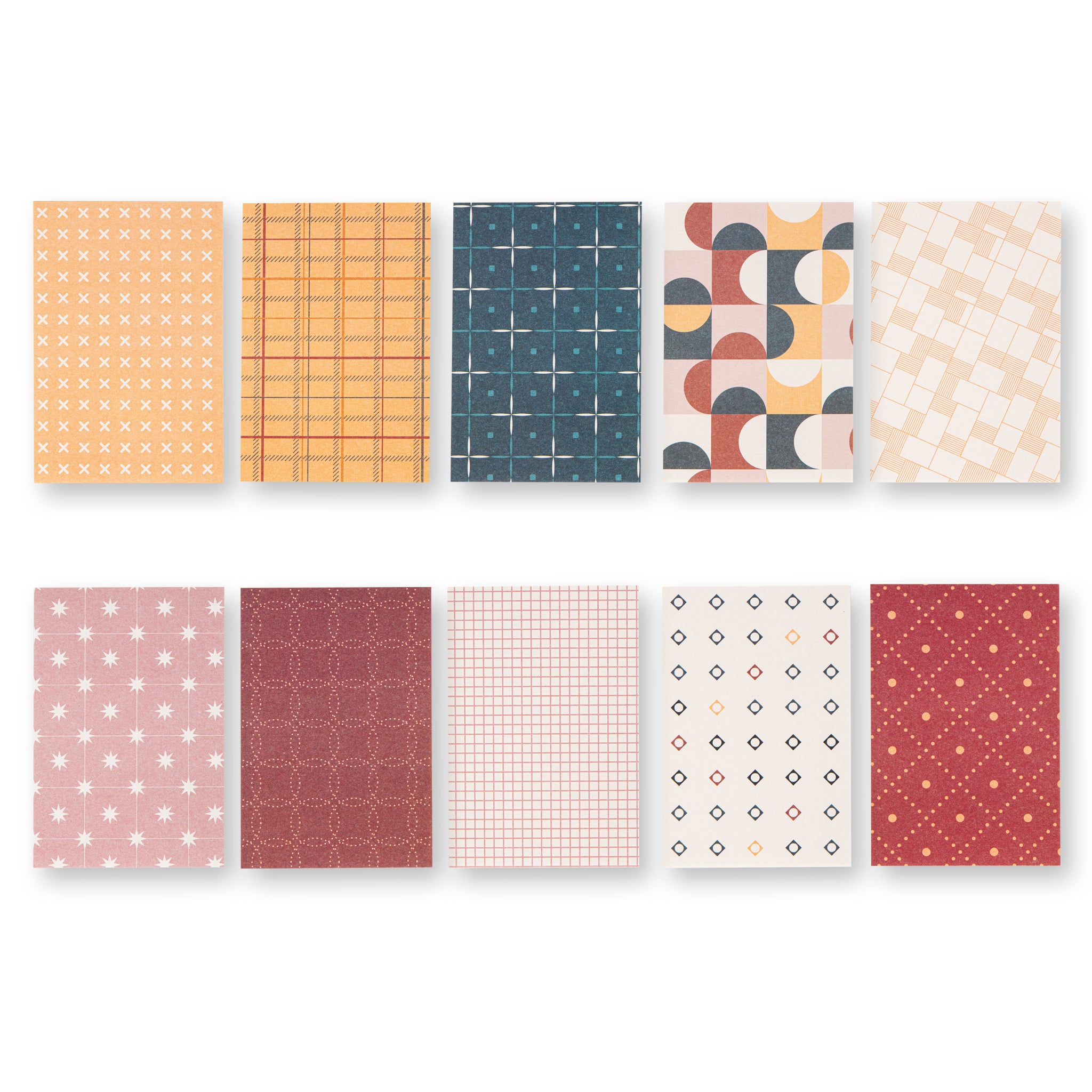 - Design Features: Geometric and minimalist patterns with repeating shapes (squares, diamonds, circles, lines, crosses, grids) in various layouts