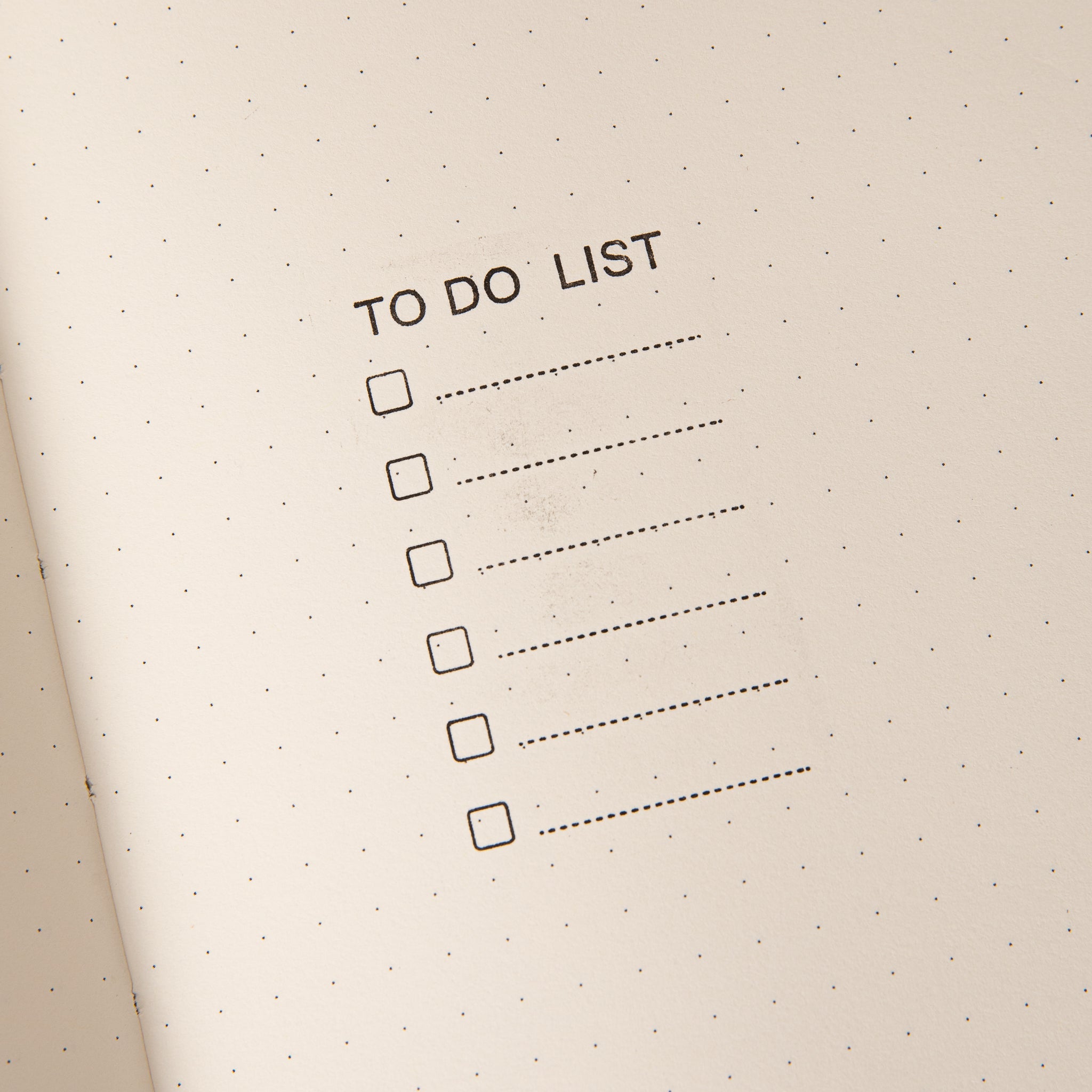 - Layout: Front displays “TO DO LIST” followed by 6 checkboxes with dashed lines