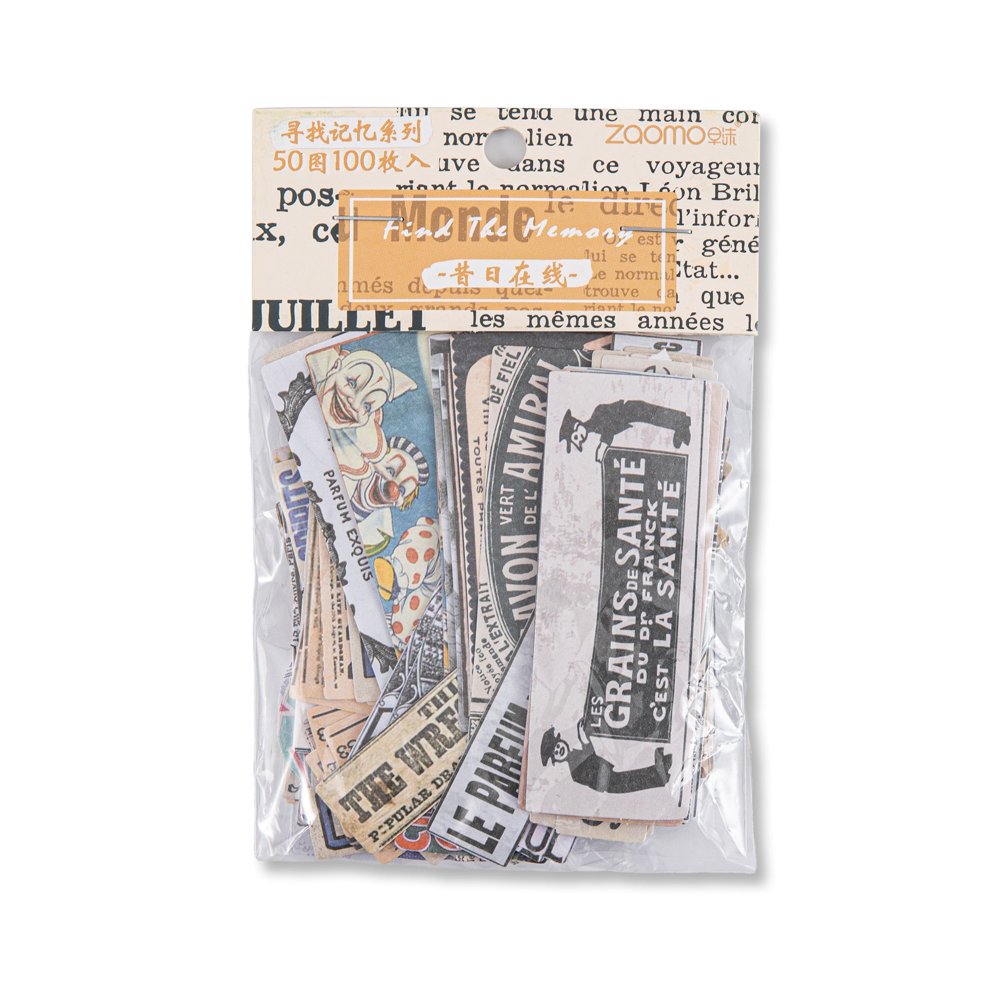 - Design Features: Vintage labels, circus posters, perfume/medical ads, newspaper clippings, handwritten – style text