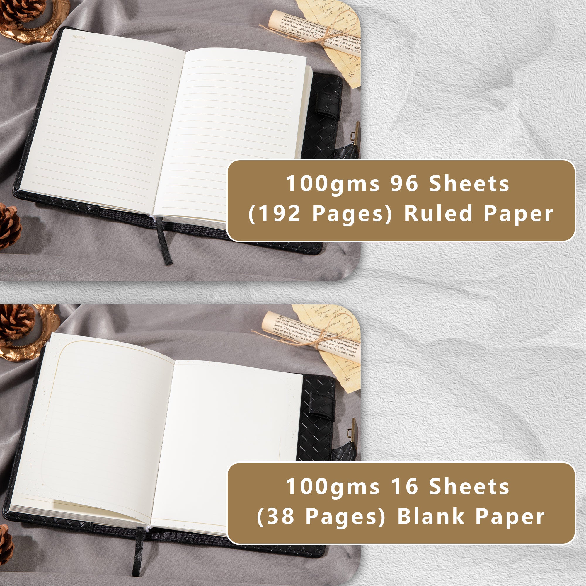 | Inner Page | 112 sheets (96 lined sheets + 16 blank sheets) |